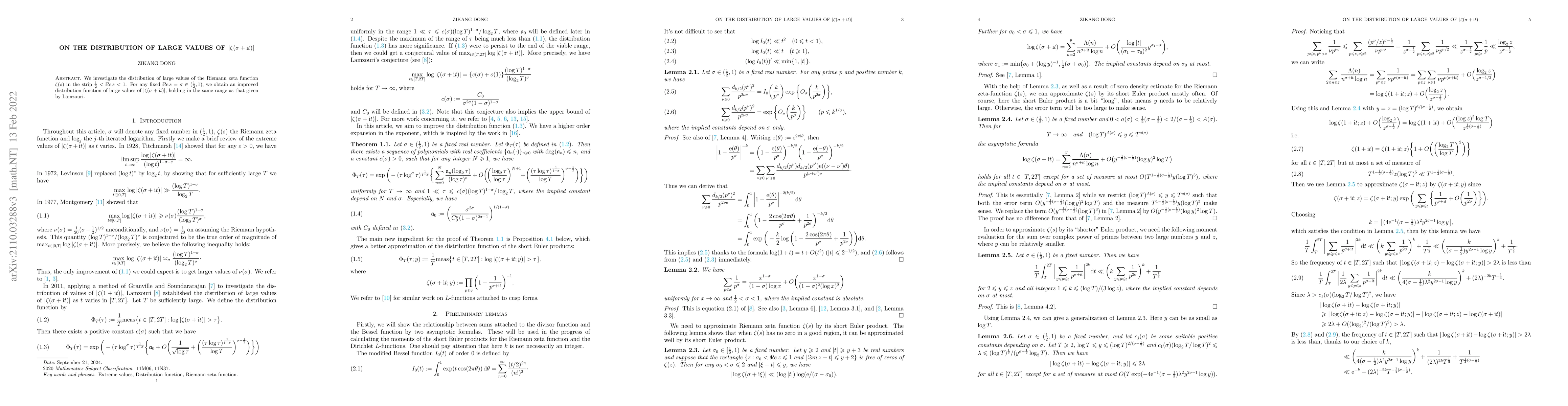 This paper improves the distribution function for large values of $|\zeta(\sigma+{\rm i}t)|$ in the critical strip $1/2<\sigma<1$, refining results previously established by Lamzouri.
