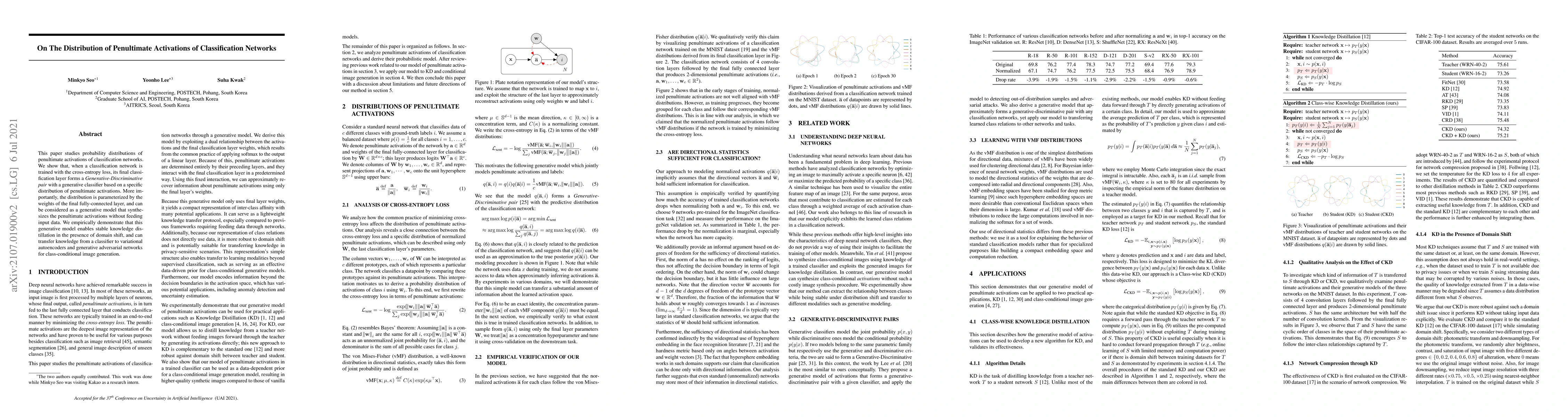 This paper investigates the probability distributions of penultimate activations in classification networks, revealing that they form a Generative-Discriminative pair with the final classification layer. The distribution is parameterized by the final layer's weights, enabling stable knowledge distillation and transfer of knowledge to generative models for class-conditional image generation.
