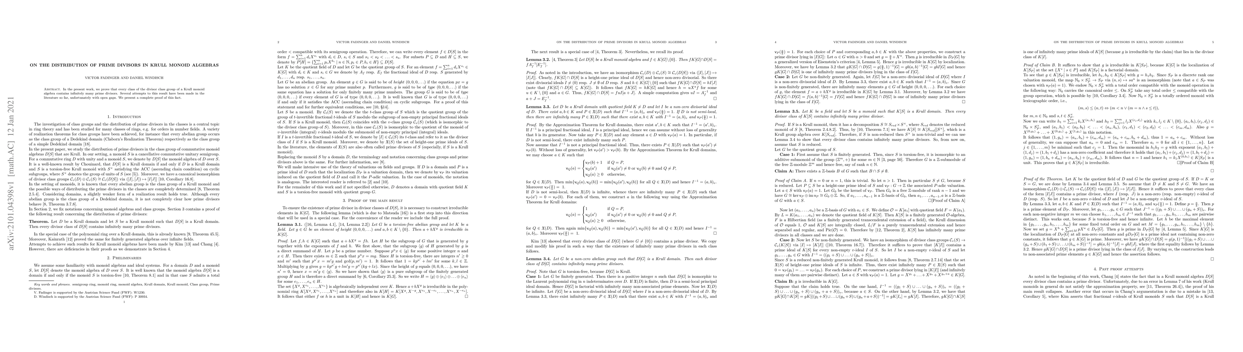 This paper proves that every class in the divisor class group of a Krull monoid algebra contains infinitely many prime divisors, providing a complete proof for a result previously left with open gaps in the literature.