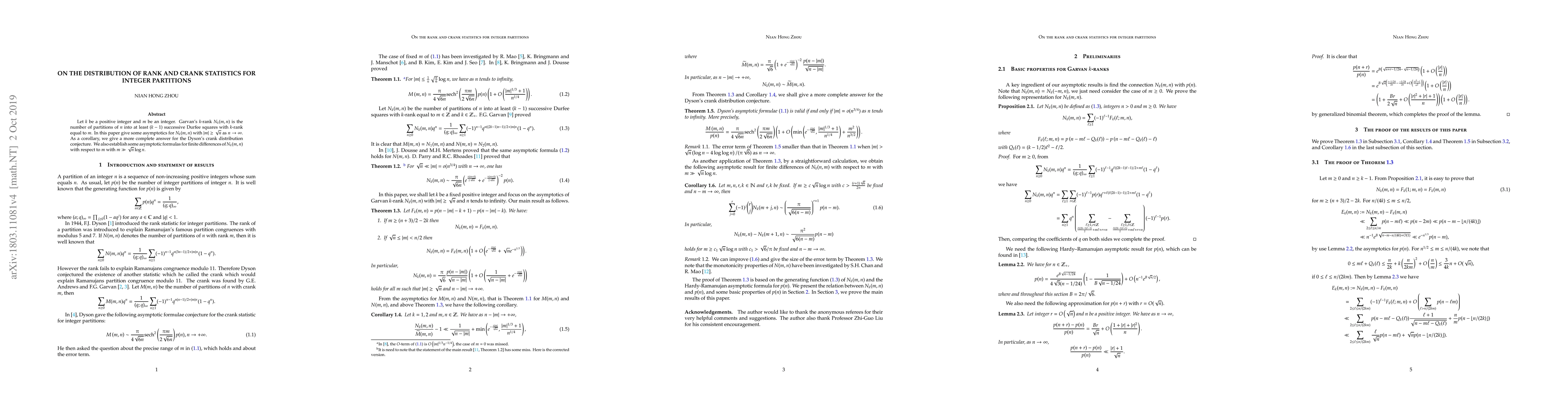 This research contributes to our understanding of rank and crank statistics, with potential applications in number theory and combinatorics.