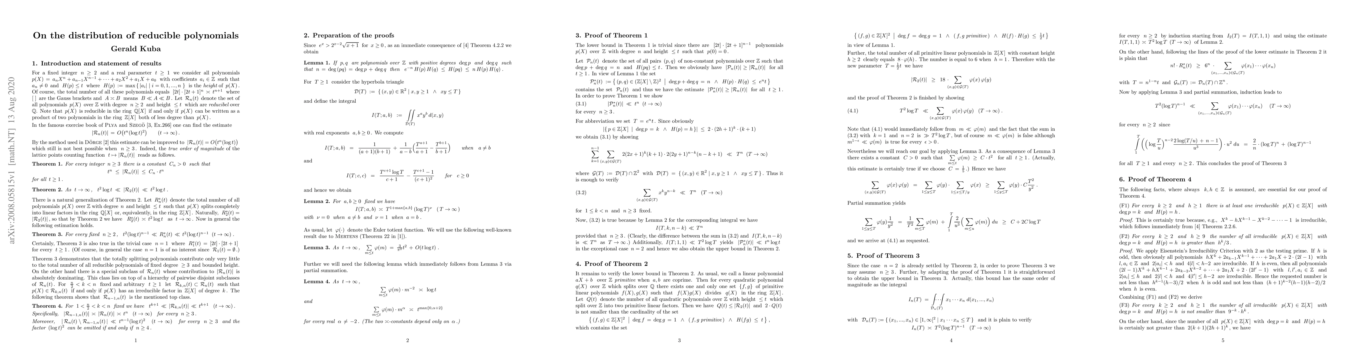 The paper investigates the distribution of reducible polynomials of a given degree and height, finding that the number of such polynomials grows like t^2 log t for degree 2 and t^n for higher degrees.