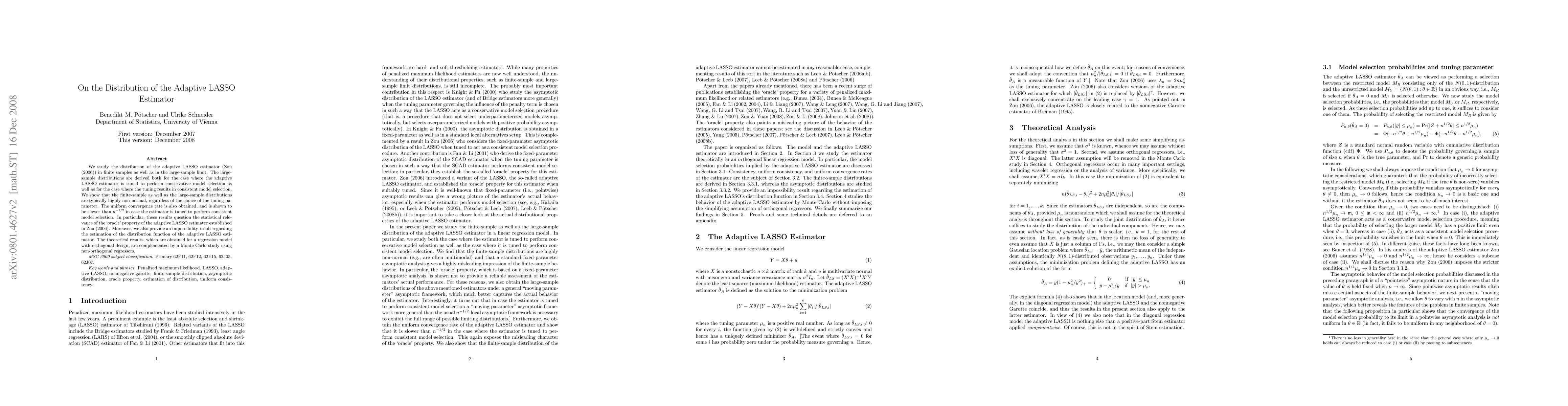 This paper investigates the distribution of the adaptive LASSO estimator, revealing both finite-sample and large-sample distributions are typically non-normal. It also shows a slower-than-expected uniform convergence rate for consistent model selection, questioning the statistical relevance of the adaptive LASSO's oracle property.