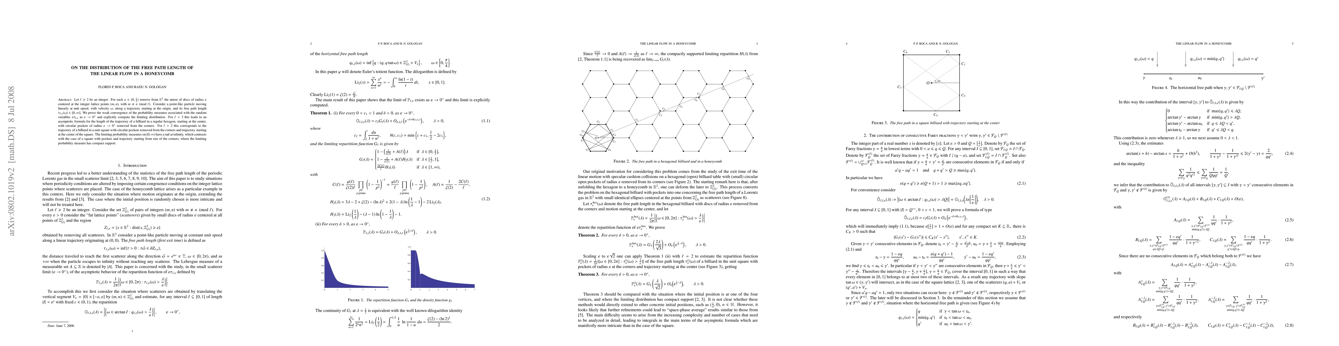 Let $\ell \geq 2$ be an integer. For each $\eps >0$ remove from $\R^2$ the union of discs of radius $\eps$ centered at the integer lattice points $(m,n$, with $m\nequiv n\mod{\ell}$. Consider a point-like particle moving linearly at unit speed, with velocity $\omega$, along a trajectory starting at the origin, and its free path length $\tau_{\ell,\eps} (\omega)\in [0,\infty]$. We prove the weak convergence of the probability measures associated with the random variables $\eps \tau_{\ell,\eps}$ as $\eps \to 0^+$ and explicitly compute the limiting distribution. For $\ell=3$ this leads to an asymptotic formula for the length of the trajectory of a billiard in a regular hexagon, starting at the center, with circular pockets of radius $\eps\to 0^+$ removed from the corners. For $\ell=2$ this corresponds to the trajectory of a billiard in a unit square with circular pockets removed from the corners and trajectory starting at the center of the square. The limiting probability measures on $[0,\infty)$ have a tail at infinity, which contrasts with the case of a square with pockets and trajectory starting from one of the corners, where the limiting probability measure has compact support.