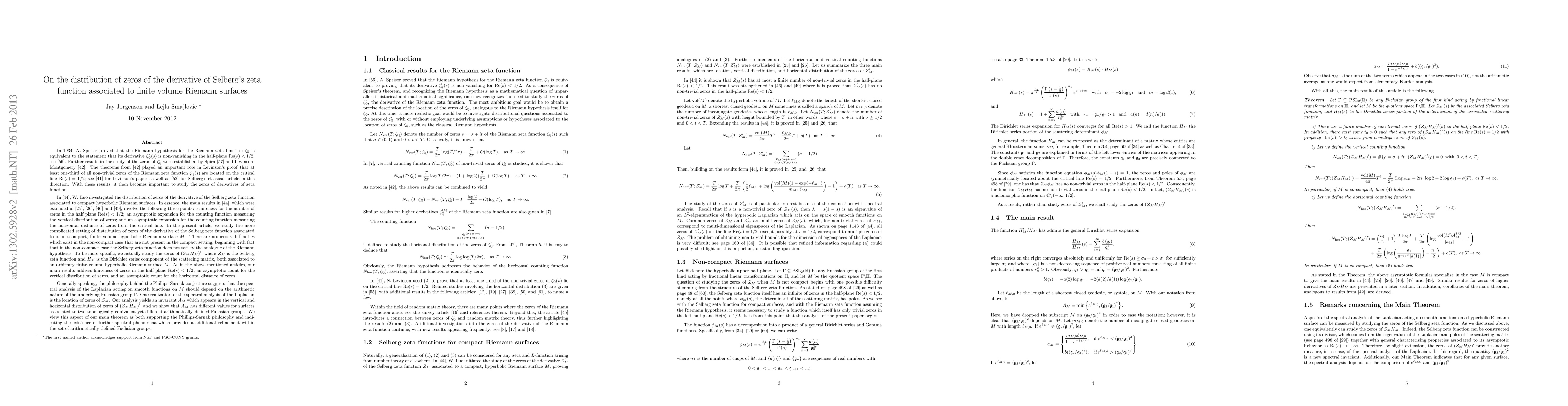 W. Luo has investigated the distribution of zeros of the derivative of the Selberg zeta function associated to compact hyperbolic Riemann surfaces. In essence, the main results in Luo's article involve the following three points: Finiteness for the number of zeros in the half plane to the left of the critical line; an asymptotic expansion for the counting function measuring the vertical distribution of zeros; and an asymptotic expansion for the counting function measuring the horizontal distance of zeros from the critical line. In the present article, we study the more complicated setting of distribution of zeros of the derivative of the Selberg zeta function associated to a non-compact, finite volume hyperbolic Riemann surface. There are numerous difficulties which exist in the non-compact case that are not present in the compact setting, beginning with the fact that in the non-compact case the Selberg zeta function does not satisfy the analogue of the Riemann hypothesis. To be more specific, we actually study the zeros of the derivative of ZH, where Z is the Selberg zeta function and H is the Dirichlet series component of the scattering matrix, both associated to an arbitrary finite-volume hyperbolic Riemann surface. Our main results address finiteness of zeros in the half plane to the left of the critical line, an asymptotic count for the vertical distribution of zeros, and an asymptotic count for the horizontal distance of zeros.