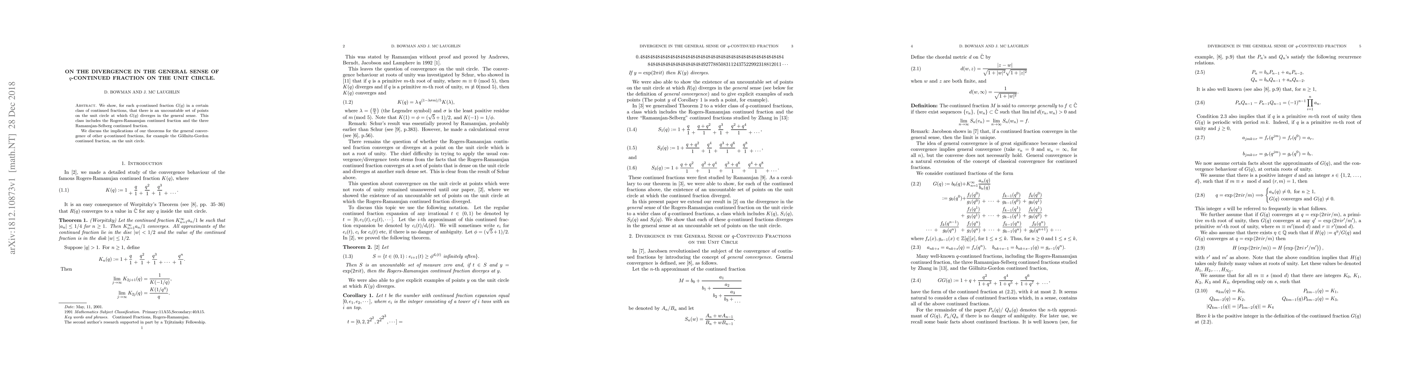 We show, for each $q$-continued fraction $G(q)$ in a certain class of continued fractions, that there is an uncountable set of points on the unit circle at which $G(q)$ diverges in the general sense. This class includes the Rogers-Ramanujan continued fraction and the three Ramanujan-Selberg continued fraction. We discuss the implications of our theorems for the general convergence of other $q$-continued fractions, for example the G\"{o}llnitz-Gordon continued fraction, on the unit circle.