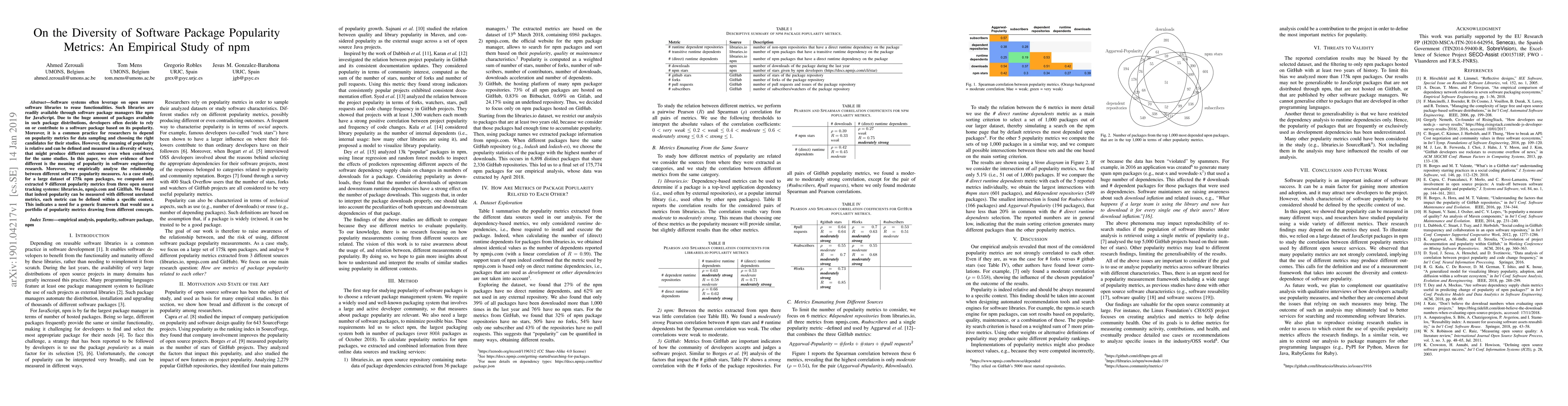 A study analyzed 175k npm packages to show that software popularity can be measured in different ways using unrelated metrics, highlighting the need for a generic framework to use a portfolio of popularity metrics.