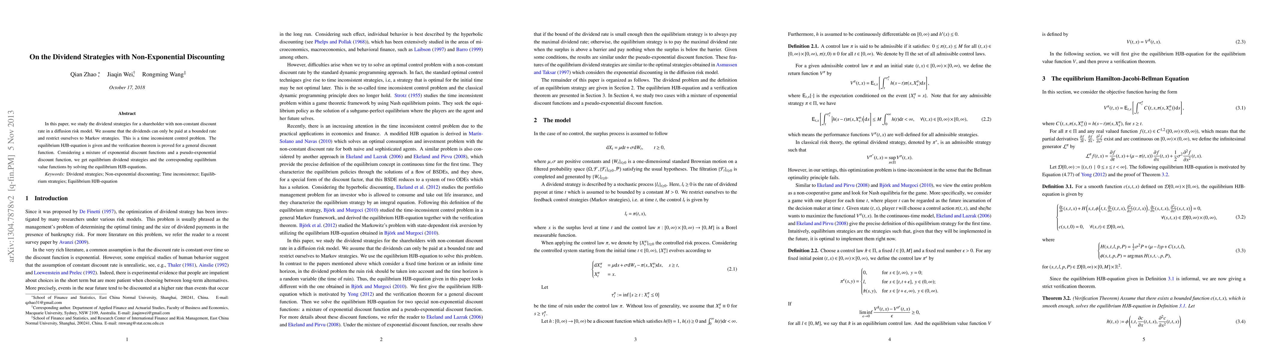 In this paper, we study the dividend strategies for a shareholder with non-constant discount rate in a diffusion risk model. We assume that the dividends can only be paid at a bounded rate and restrict ourselves to the Markov strategies. This is a time inconsistent control problem. The extended HJB equation is given and the verification theorem is proved for a general discount function. Considering the pseudo-exponential discount functions (Type I and Type II), we get the equilibrium dividend strategies and the equilibrium value functions by solving the extended HJB equations.