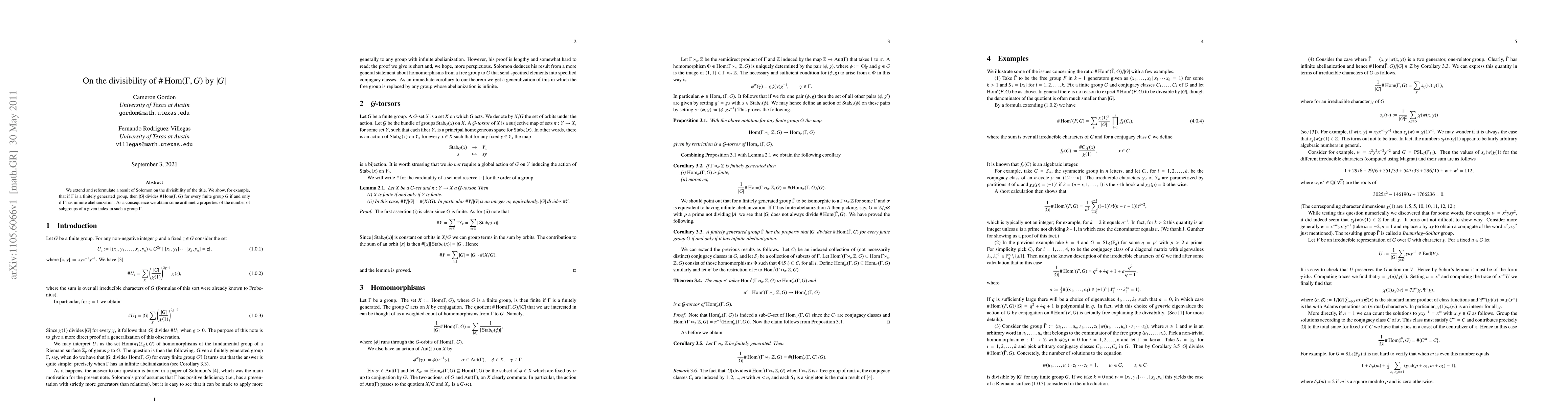 We extend and reformulate a result of Solomon on the divisibility of the title. We show, for example, that if $\Gamma$ is a finitely generated group, then $|G|$ divides $#\Hom(\Gamma,G)$ for every finite group $G$ if and only if $\Gamma$ has infinite abelianization. As a consequence we obtain some arithmetic properties of the number of subgroups of a given index in such a group $\Gamma$.