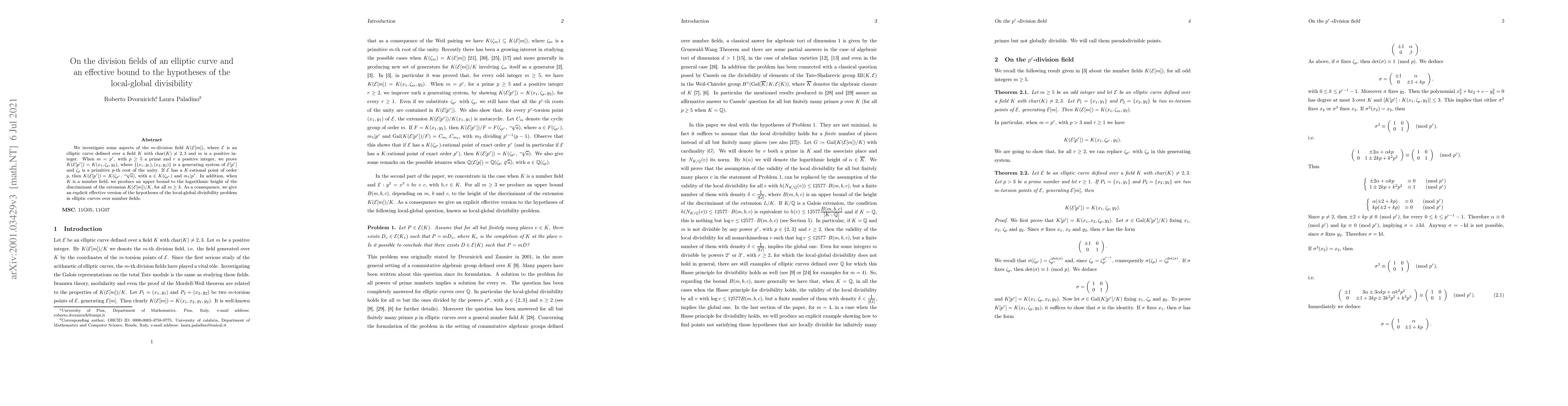 We investigate some aspects of the $m$-division field $K({\mathcal{E}}[m])$, where $\mathcal{E}$ is an elliptic curve defined over a field $K$ with ${\textrm{char}}(K)\neq 2,3$ and $m$ is a positive integer. When $m=p^r$, with $p\geq 5$ a prime and $r$ a positive integer, we prove $K(\mathcal{E}[p^r])=K(x_1,\zeta_p,y_2)$, where $\{(x_1, y_1),(x_2,y_2)\}$ is a generating system of ${\mathcal{E}}[p^r]$ and $\zeta_p$ is a primitive $p$-th root of the unity. If $\mathcal{E}$ has a $K$-rational point of order $p$, then $K(\mathcal{E}[p^r])=K(\zeta_{p^r},\sqrt[m_1]{a})$, with $a\in K(\zeta_{p^r})$ and $m_1|p^r$. In addition, when $K$ is a number field, we produce an upper bound to the logarithmic height of the discriminant of the extension $K(\mathcal{E}[m])/K$, for all $m\geq 3$. As a consequence, we give an explicit effective version of the hypotheses of the local-global divisibility problem in elliptic curves over number fields.