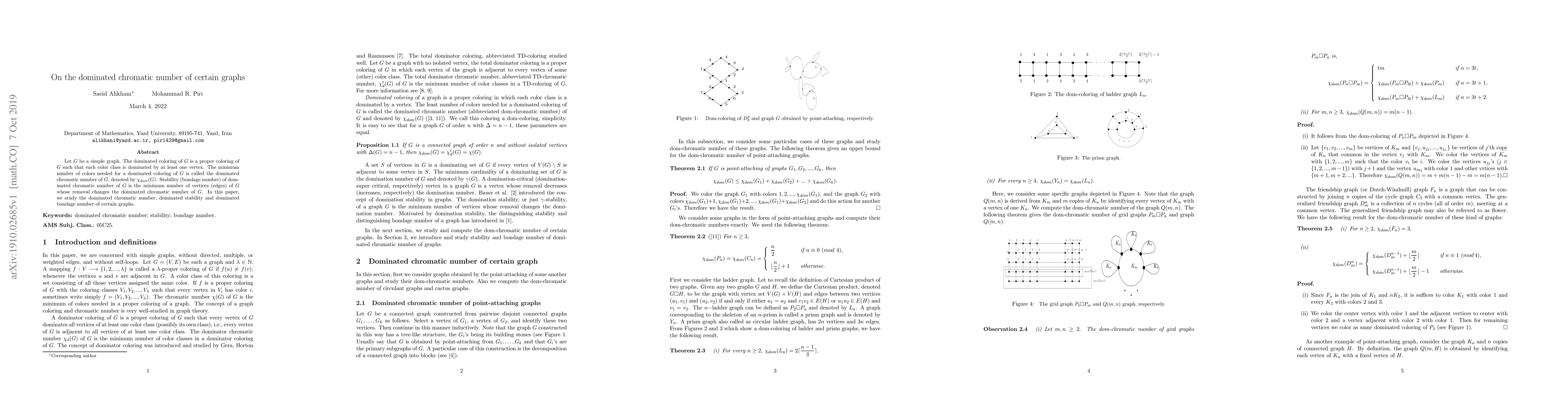 This paper investigates the dominated chromatic number, stability, and bondage number for specific graphs, focusing on the minimum colors needed for a dominated coloring and the impact of vertex/edge removal on this coloring.