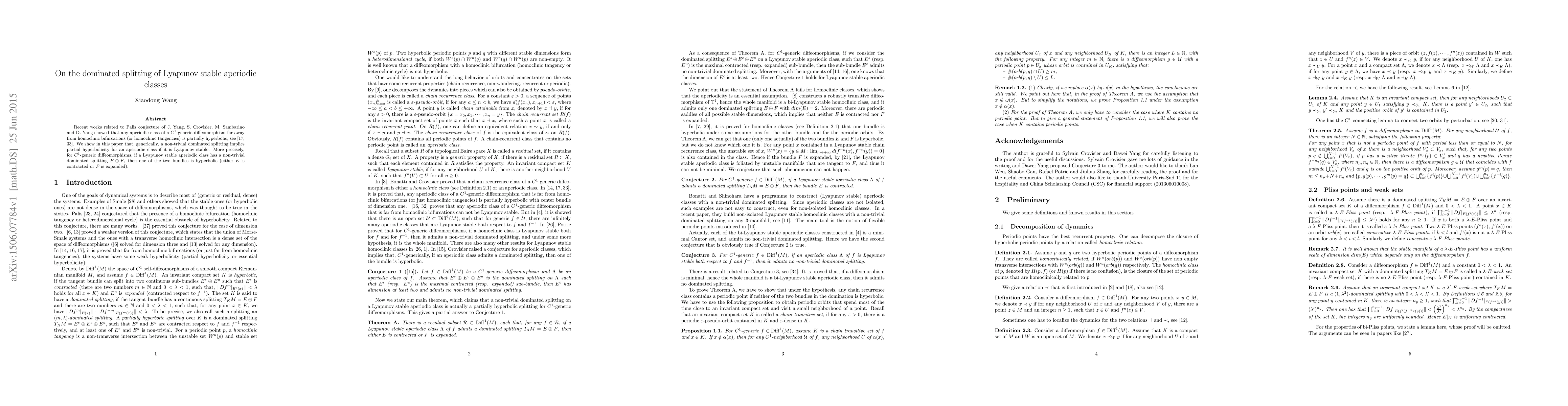 This paper establishes that for $C^1$-generic diffeomorphisms, a Lyapunov stable aperiodic class generally exhibits partial hyperbolicity if it possesses a non-trivial dominated splitting, with at least one of the bundles being hyperbolic. This supports recent findings on Palis conjecture in the context of aperiodic classes.