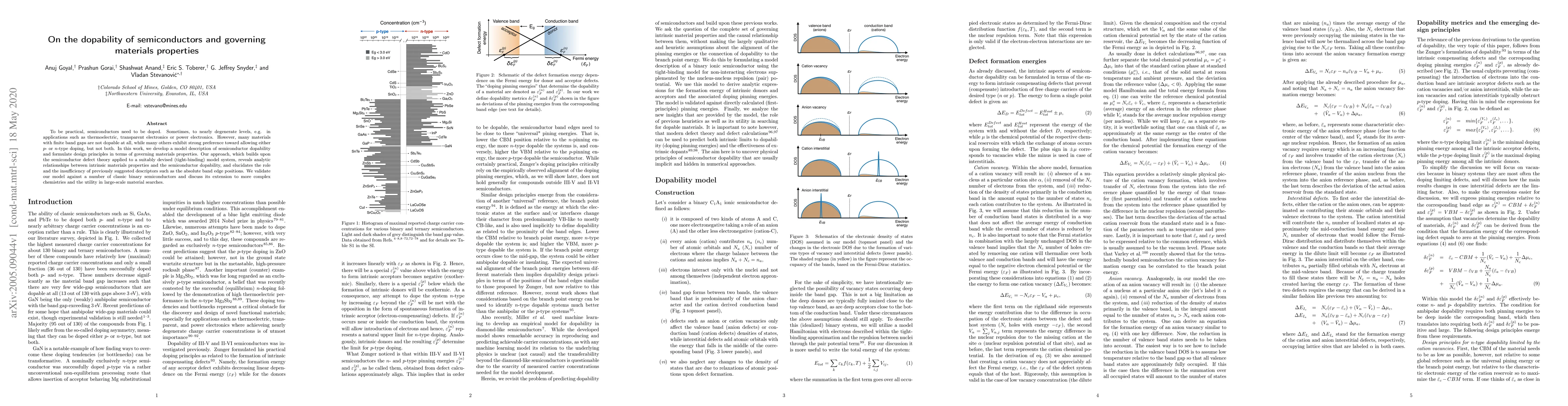 To be practical, semiconductors need to be doped. Sometimes, to nearly degenerate levels, e.g. in applications such as thermoelectric, transparent electronics or power electronics. However, many materials with finite band gaps are not dopable at all, while many others exhibit strong preference toward allowing either p- or n-type doping, but not both. In this work, we develop a model description of semiconductor dopability and formulate design principles in terms of governing materials properties. Our approach, which builds upon the semiconductor defect theory applied to a suitably devised (tight-binding) model system, reveals analytic relationships between intrinsic materials properties and the semiconductor dopability, and elucidates the role and the insufficiency of previously suggested descriptors such as the absolute band edge positions. We validate our model against a number of classic binary semiconductors and discuss its extension to more complex chemistries and the utility in large-scale material searches.