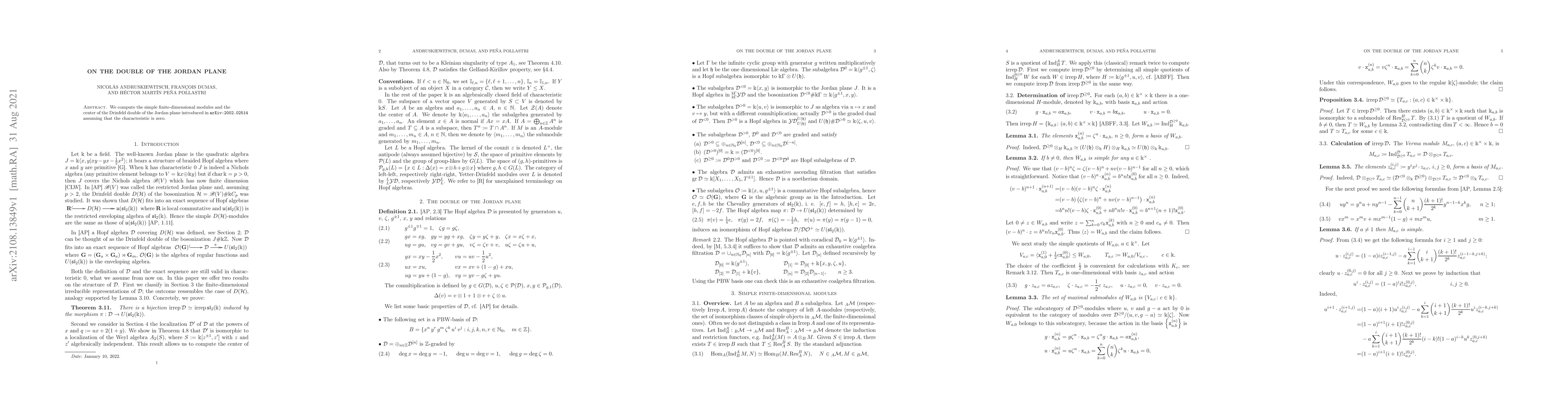 Summary: This paper computes the simple finite-dimensional modules and the center of the Drinfeld double of the Jordan plane in characteristic zero, expanding on the foundational work introduced in arXiv:2002.02514. The findings provide deeper insights into the structure of this mathematical object.