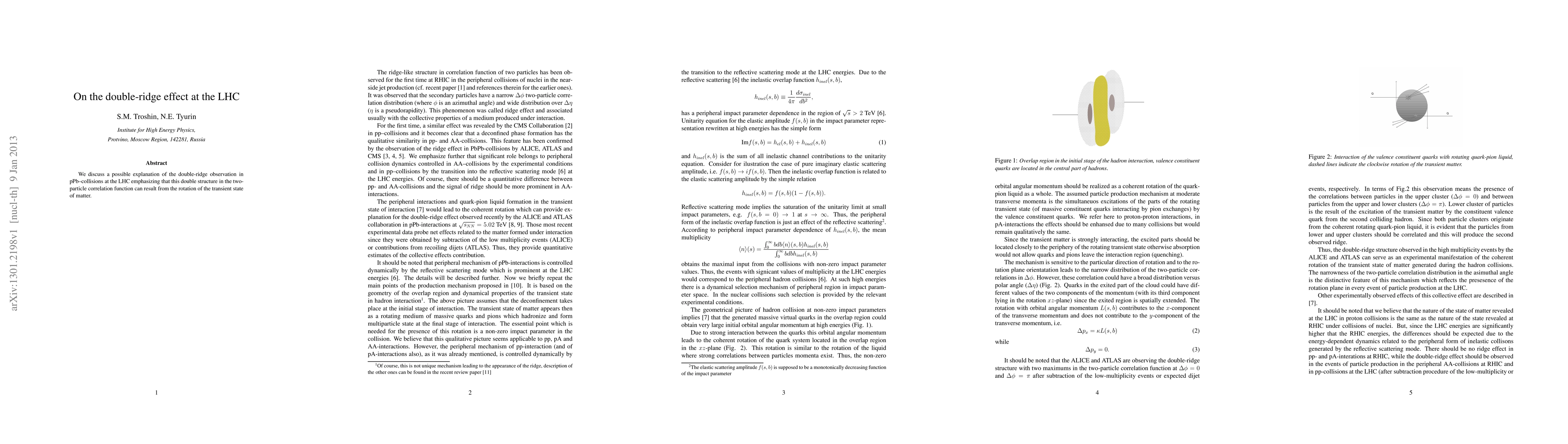 We discuss a possible explanation of the double-ridge observation in pPb--collisions at the LHC emphasizing that this double structure in the two-particle correlation function can result from the rotation of the transient state of matter.