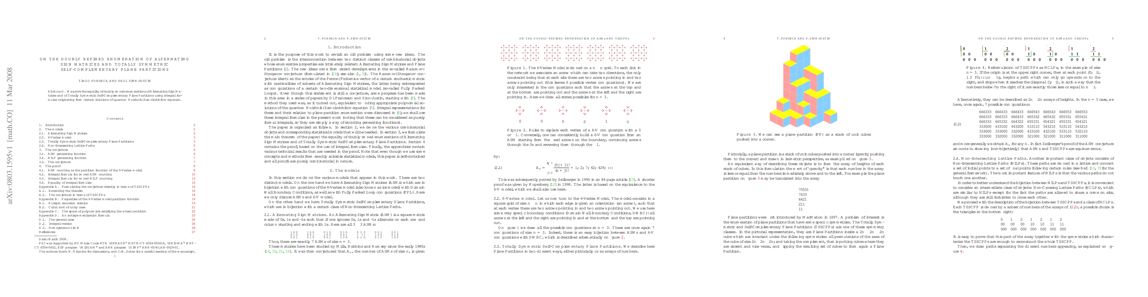 This paper establishes an equivalence between the doubly refined counts of Alternating Sign Matrices and Totally Symmetric Self-Complementary Plane Partitions via integral solutions derived from the quantum Knizhnik-Zamolodchikov equation. The findings provide a new connection between seemingly disparate combinatorial structures.
