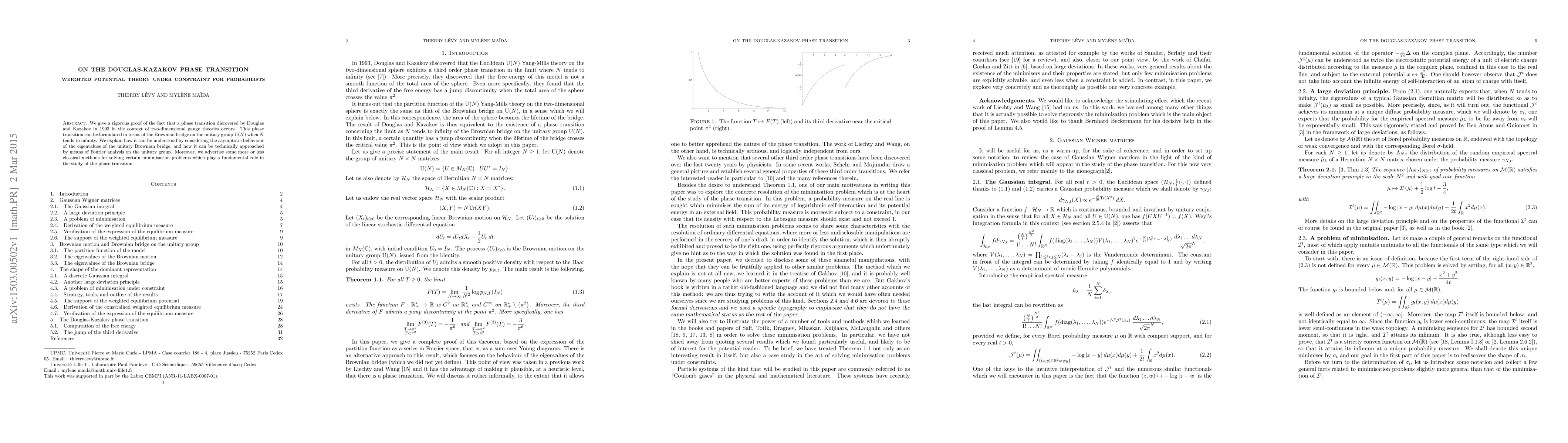 The paper rigorously proves the existence of a phase transition discovered by Douglas and Kazakov in 1993 within two-dimensional gauge theories, formulating it via the Brownian bridge on the unitary group U(N) as N tends to infinity. It employs Fourier analysis and classical methods for solving minimization problems to understand the asymptotic behavior of the eigenvalues in this context.