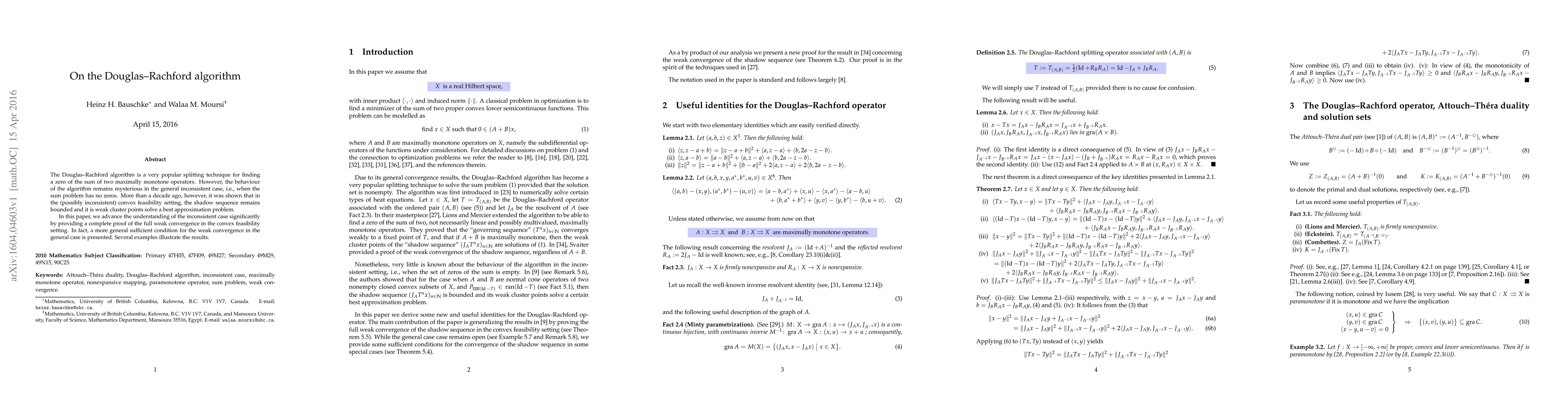 The Douglas-Rachford algorithm is a very popular splitting technique for finding a zero of the sum of two maximally monotone operators. However, the behaviour of the algorithm remains mysterious in the general inconsistent case, i.e., when the sum problem has no zeros. More than a decade ago, however, it was shown that in the (possibly inconsistent) convex feasibility setting, the shadow sequence remains bounded and it is weak cluster points solve a best approximation problem. In this paper, we advance the understanding of the inconsistent case significantly by providing a complete proof of the full weak convergence in the convex feasibility setting. In fact, a more general sufficient condition for the weak convergence in the general case is presented. Several examples illustrate the results.