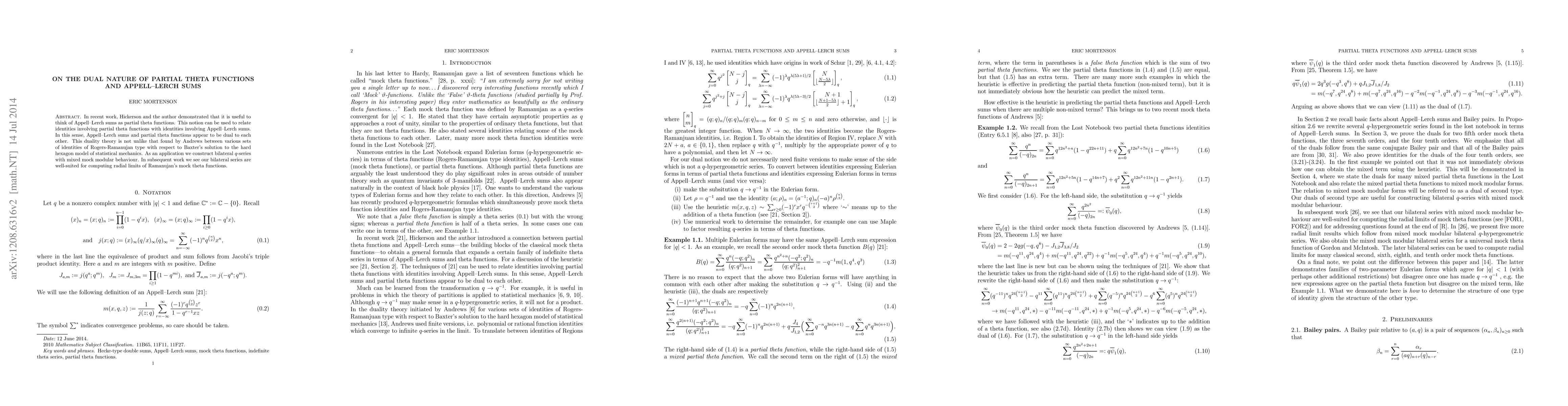 In recent work, Hickerson and the author demonstrated that it is useful to think of Appell--Lerch sums as partial theta functions. This notion can be used to relate identities involving partial theta functions with identities involving Appell--Lerch sums. In this sense, Appell--Lerch sums and partial theta functions appear to be dual to each other. This duality theory is not unlike that found by Andrews between various sets of identities of Rogers-Ramanujan type with respect to Baxter's solution to the hard hexagon model of statistical mechanics. As an application we construct bilateral $q$-series with mixed mock modular behaviour.