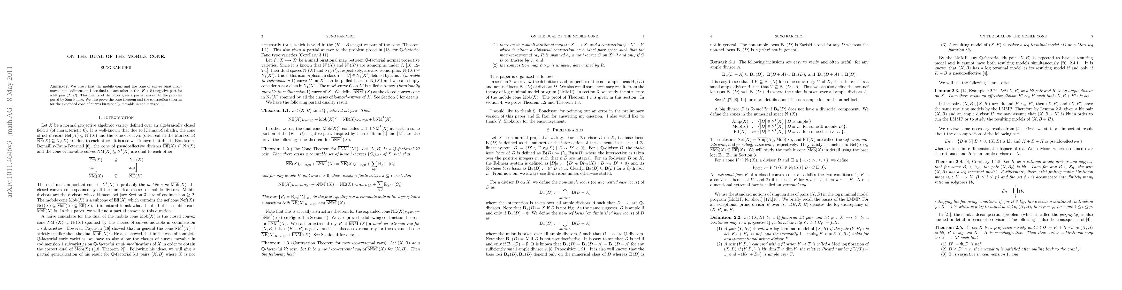 Researchers prove that two cones related to mobile divisors and curves in a klt pair are dual, providing structure theorems and contraction results with implications for birational geometry.