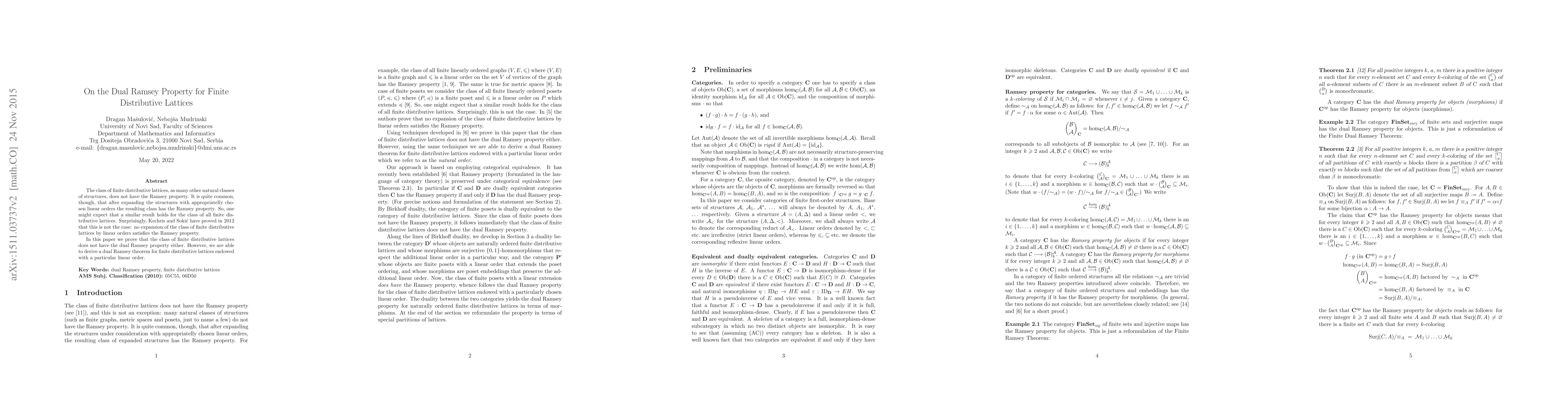 The research employs category theory, particularly focusing on dual Ramsey property for finite distributive lattices, expanded with appropriate linear orders.
