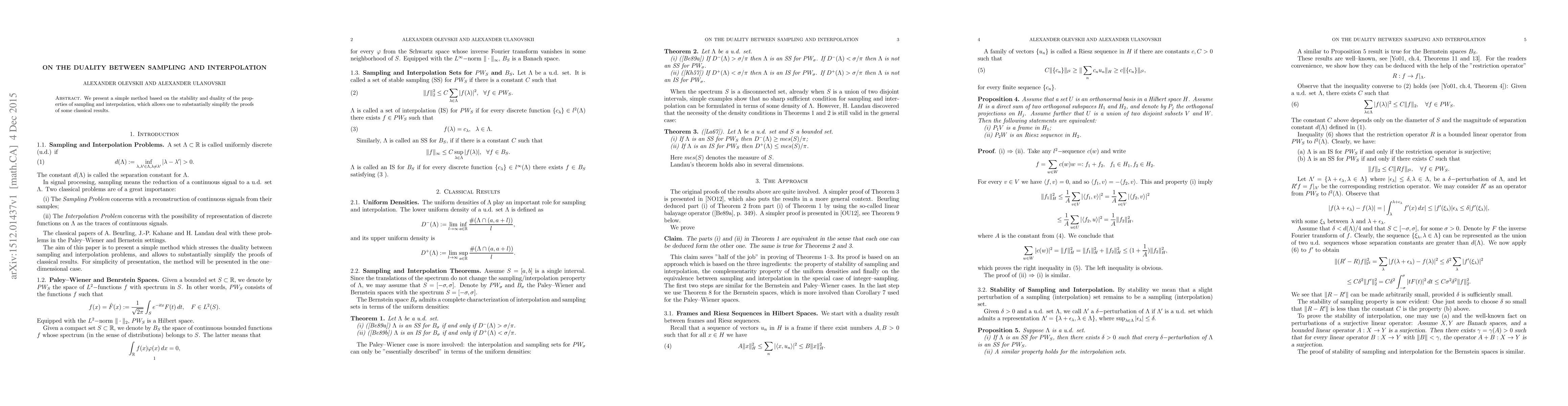 We present a simple method based on the stability and duality of the properties of sampling and interpolation, which allows one to substantially simplify the proofs of some classical results.