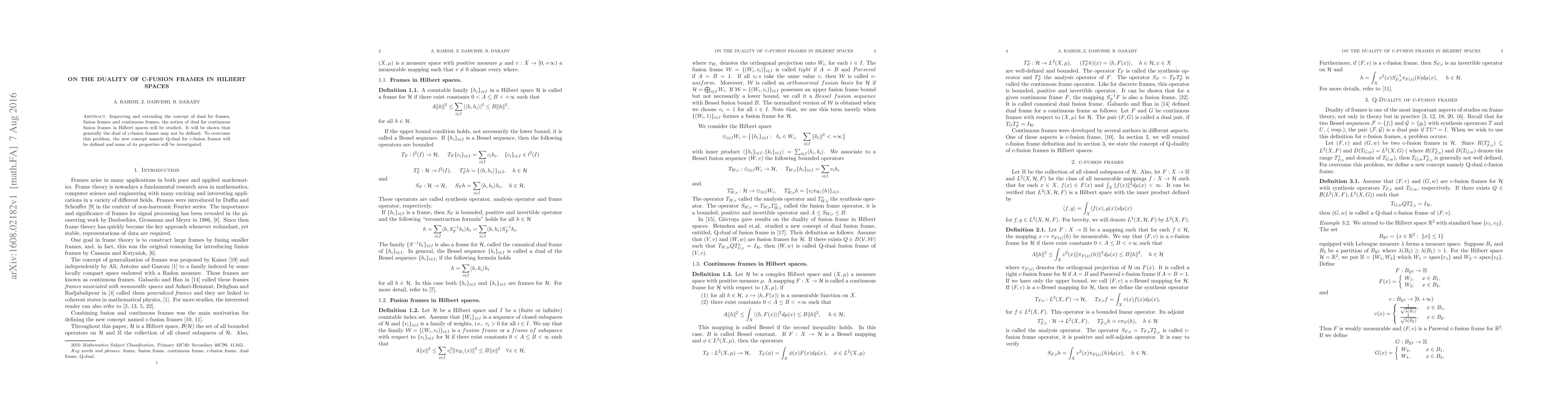 This paper explores the concept of duals for continuous fusion frames in Hilbert spaces, demonstrating that traditional duals may not always exist. It introduces a new concept, Q-dual for c-fusion frames, and investigates its properties.