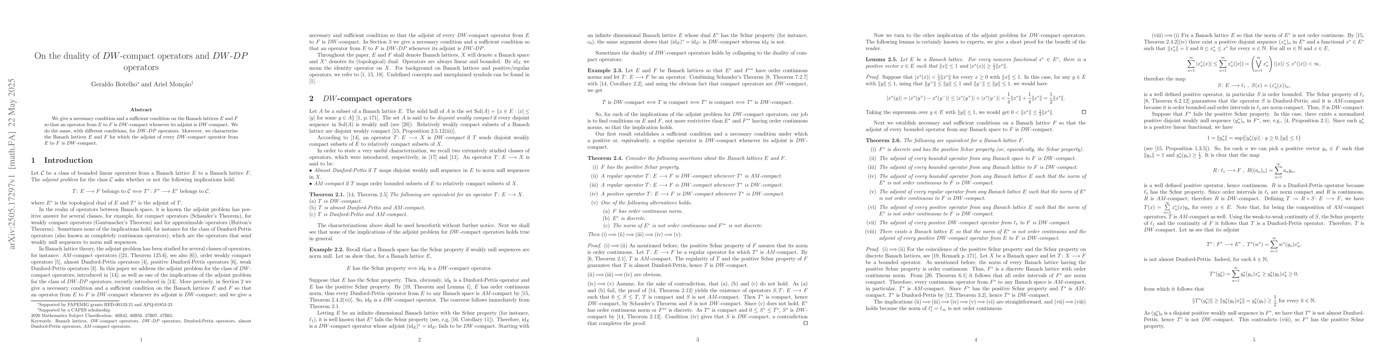 The research introduces distinct conditions for DW-compact and DW-DP operators, distinguishing it from previous work on operator duality in Banach lattices.