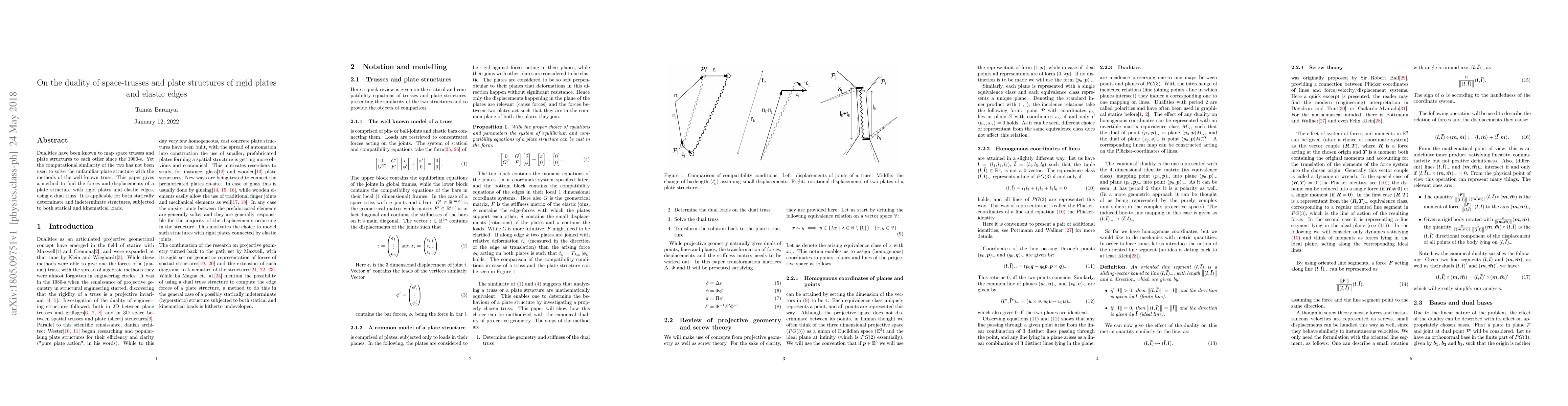 Researchers developed a method to analyze plate structures with rigid plates and elastic edges using a dual truss approach, offering a computational advantage for solving both statically determinate and indeterminate structures.