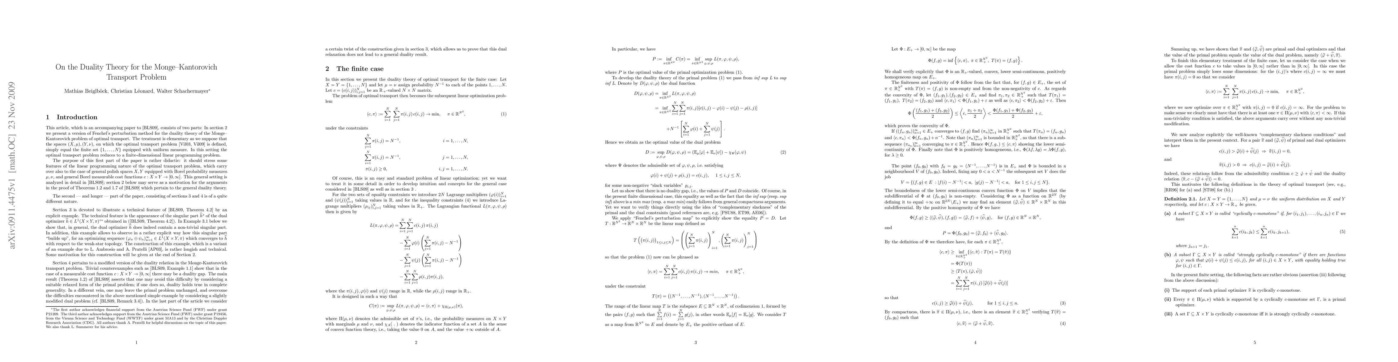 The paper is accompanying "A general Duality Theorem for the Monge-Kantorovich Transport Problem". We explain the methods used in this article in an elementary setting and present two examples complementing the results obtained therein.