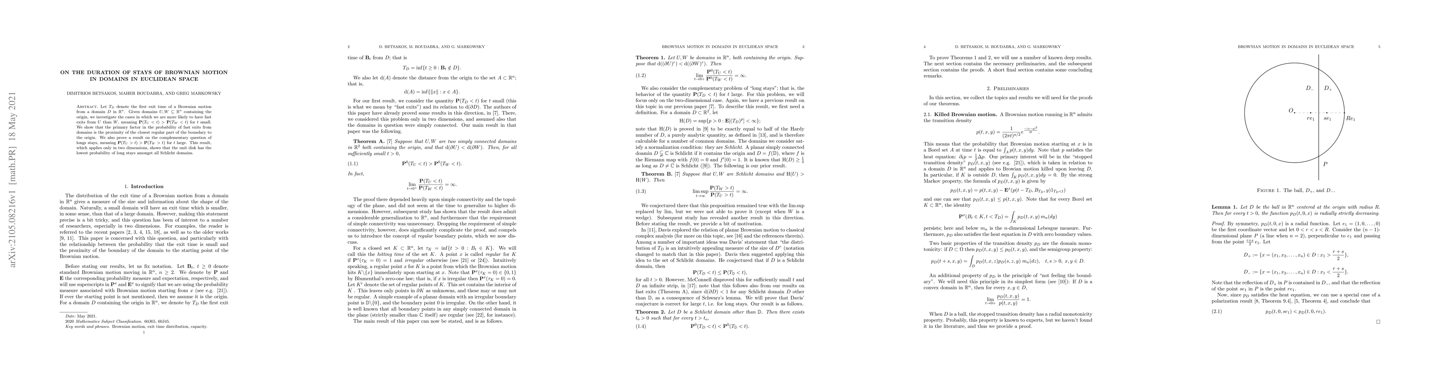 This paper investigates the duration of Brownian motion stays in domains in Euclidean space, focusing on the likelihood of fast exits from domains based on boundary proximity to the origin. It demonstrates that the probability of fast exits is primarily influenced by the closest regular boundary part, and in two dimensions, it proves that the unit disk has the lowest probability of long stays among Schlicht domains.