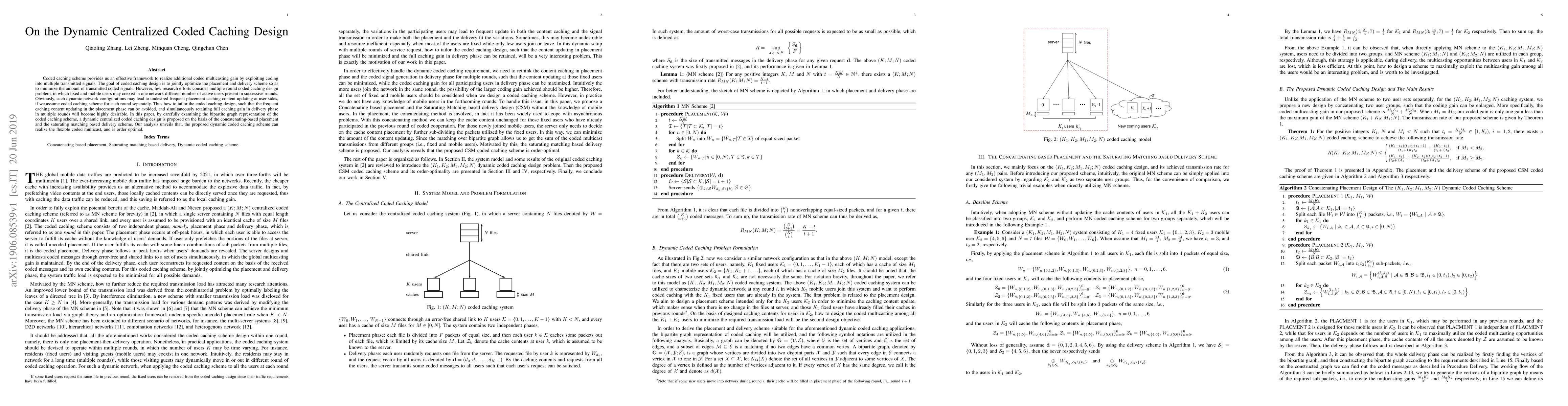 The paper introduces a novel dynamic centralized coded caching design framework that leverages concatenating-based placement and saturating matching-based delivery to efficiently handle dynamic network configurations with fixed and mobile users.
