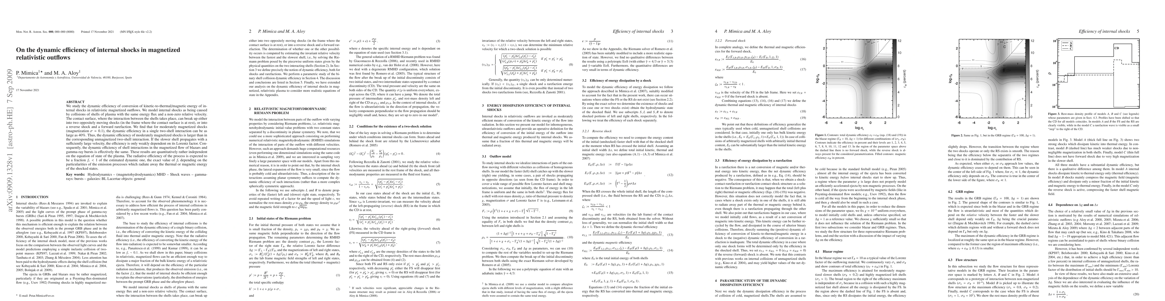 This paper investigates the dynamic efficiency of internal shocks in relativistic magnetized outflows, finding that moderately magnetized shocks can achieve up to 40% efficiency in converting kinetic energy to thermal/magnetic energy. The efficiency is largely independent of the slower shell's Lorentz factor and is comparable in blazars and gamma-ray bursts.