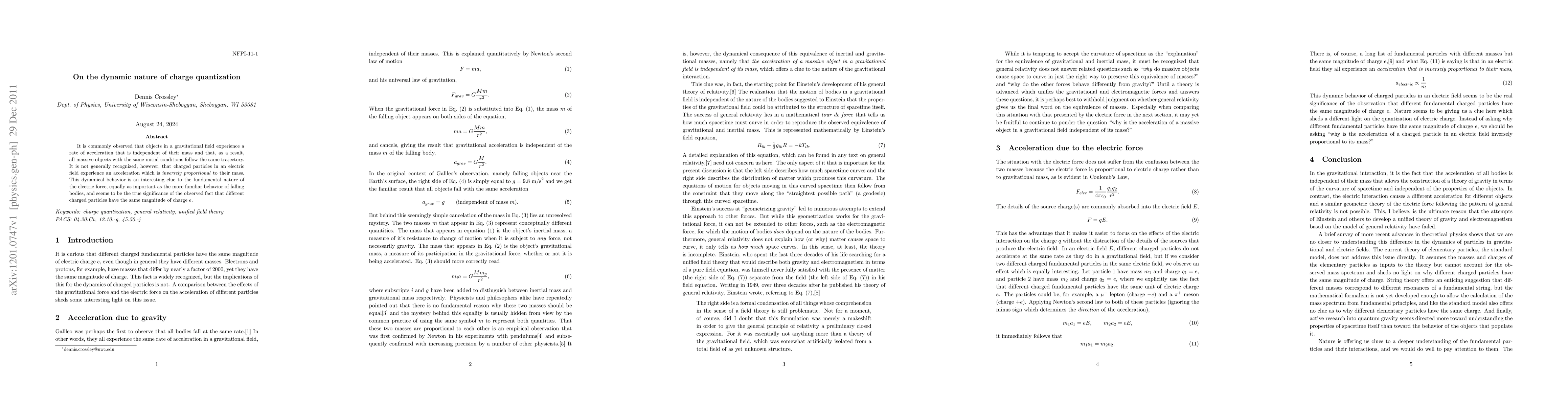 It is commonly observed that objects in a gravitational field experience a rate of acceleration that is independent of their mass and that, as a result, all massive objects with the same initial conditions follow the same trajectory. It is not generally recognized, however, that charged particles in an electric field experience an acceleration which is \emph{inversely proportional} to their mass. This dynamical behavior is an interesting clue to the fundamental nature of the electric force, equally as important as the more familiar behavior of falling bodies, and seems to be the true significance of the observed fact that different charged particles have the same magnitude of charge $e$.
