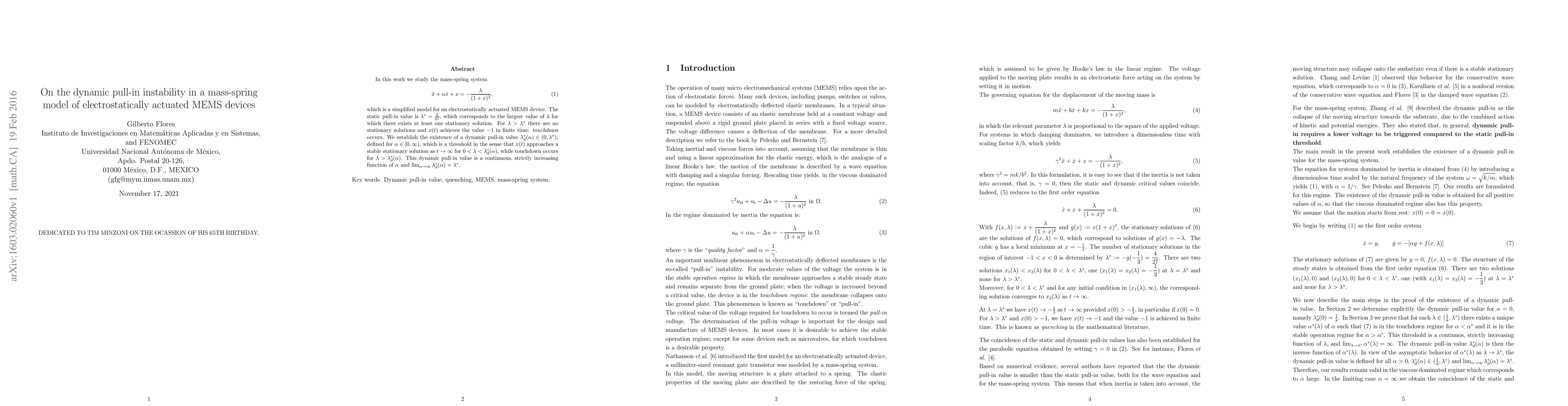 In this work we study the mass-spring system \begin{equation} \ddot x + \alpha \dot x + x = - \frac{\lambda} {(1+x)^{2}}, \label{e:inertia} \end{equation} which is a simplified model for an electrostatically actuated MEMS device. The static pull-in value is $\lambda^{*}=\frac{4}{27}$, which corresponds to the largest value of $\lambda$ for which there exists at least one stationary solution. For $\lambda > \lambda^{*}$ there are no stationary solutions and $x(t)$ achieves the value $-1$ in finite time: {\it touchdown} occurs. We establish the existence of a dynamic pull-in value $\lambda_{d}^{*}(\alpha) \in (0, \lambda^{*})$, defined for $\alpha \in [0,\infty)$, which is a threshold in the sense that $x(t)$ approaches a stable stationary solution as $t \to \infty$ for $0 < \lambda < \lambda_{d}^{*}(\alpha)$, while touchdown occurs for $\lambda > \lambda_{d}^{*}(\alpha)$. This dynamic pull-in value is a continuous, strictly increasing function of $\alpha$ and $\lim_{\alpha\to\infty} \lambda_{d}^{*}(\alpha)= \lambda^{*}$.