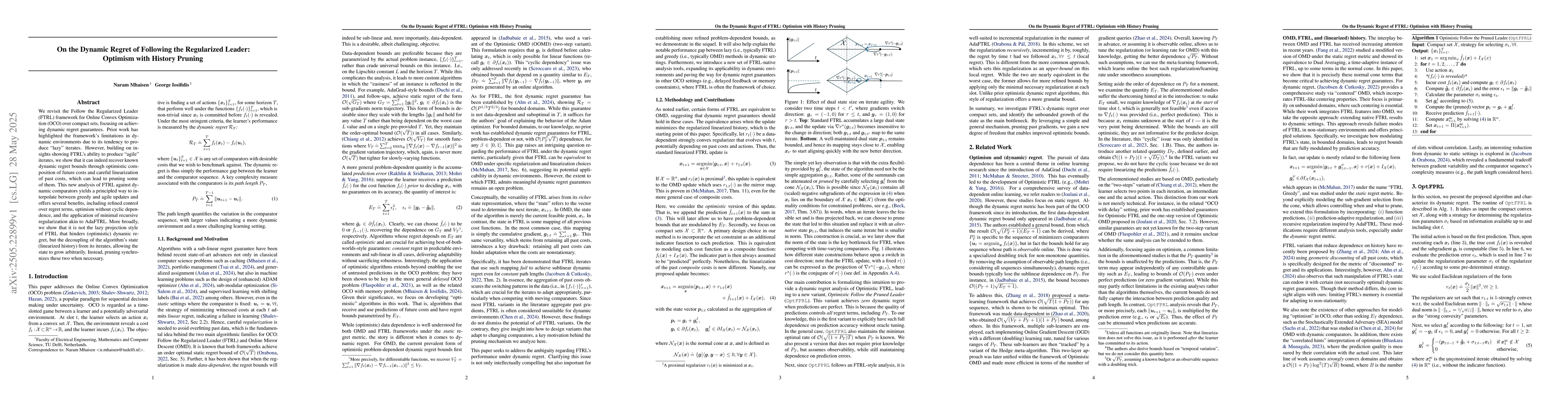 The paper presents a novel analysis of FTRL against dynamic comparators, demonstrating its ability to achieve dynamic regret guarantees through optimism with history pruning.