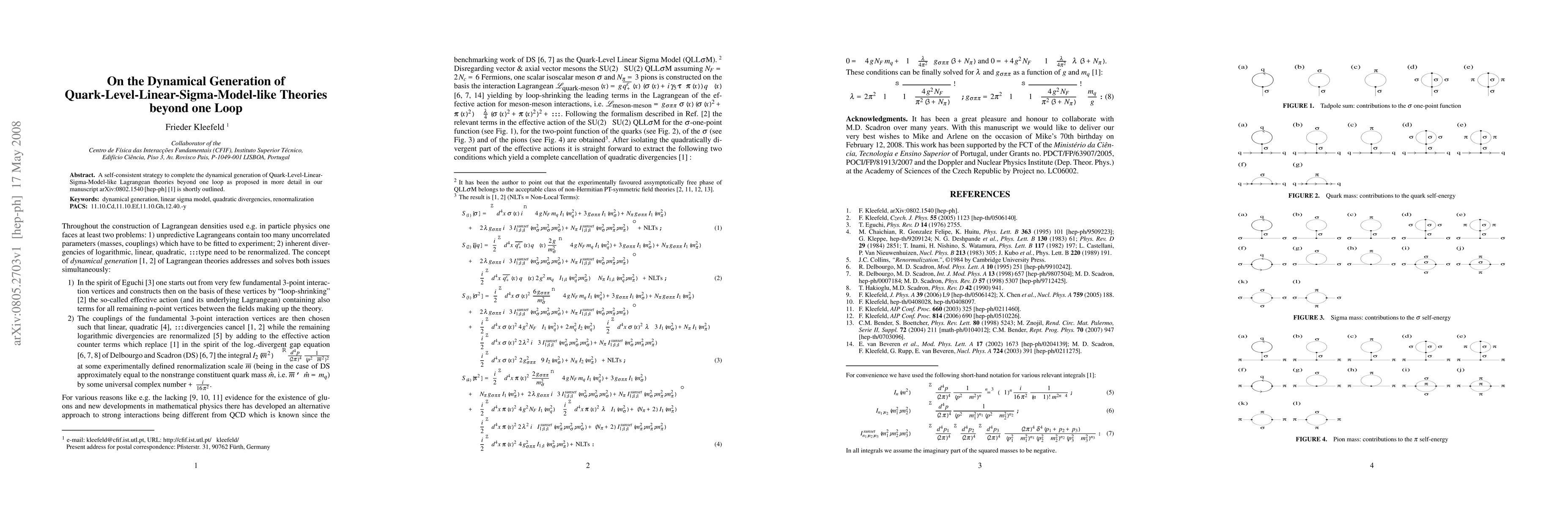 A self-consistent strategy to complete the dynamical generation of Quark-Level-Linear-Sigma-Model-like Lagrangean theories beyond one loop as proposed in more detail in our manuscript arXiv:0802.1540 [hep-ph] is shortly outlined.
