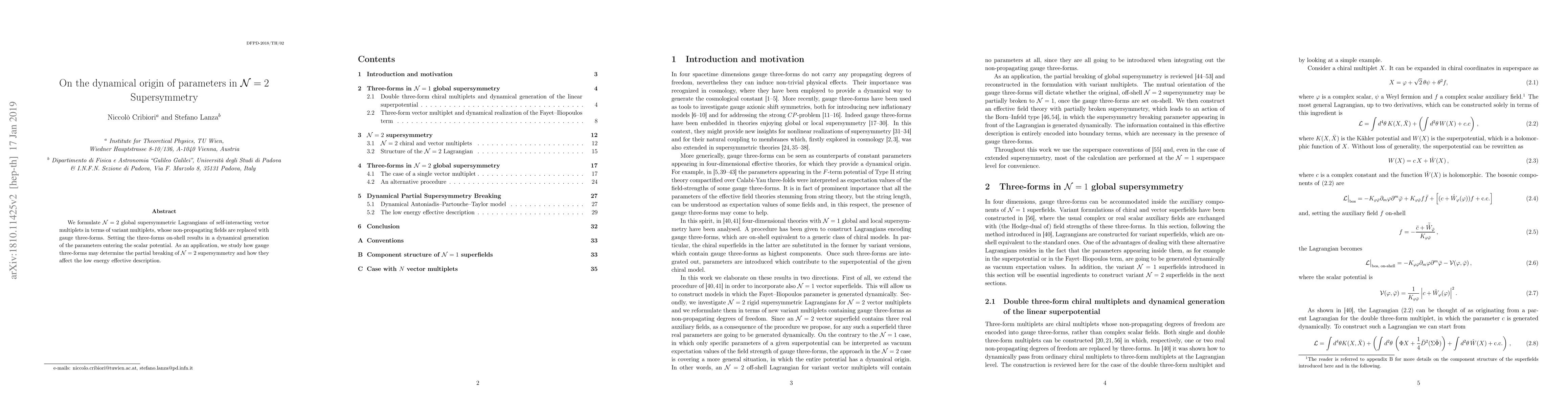 We formulate $\mathcal{N}=2$ global supersymmetric Lagrangians of self-interacting vector multiplets in terms of variant multiplets, whose non-propagating fields are replaced with gauge three-forms. Setting the three-forms on-shell results in a dynamical generation of the parameters entering the scalar potential. As an application, we study how gauge three-forms may determine the partial breaking of $\mathcal{N}=2$ supersymmetry and how they affect the low energy effective description.