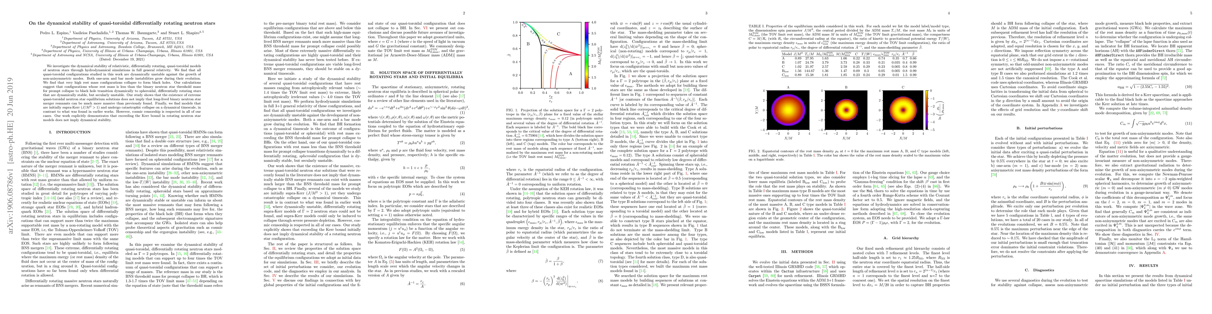 This research investigates the dynamical stability of relativistic, differentially rotating quasi-toroidal neutron stars, revealing that all configurations are unstable against non-axisymmetric modes, leading to collapse or transition to stable, though secularly unstable, spheroidal states. The study concludes that extreme quasi-toroidal neutron stars do not support long-lived, massive merger remnants.
