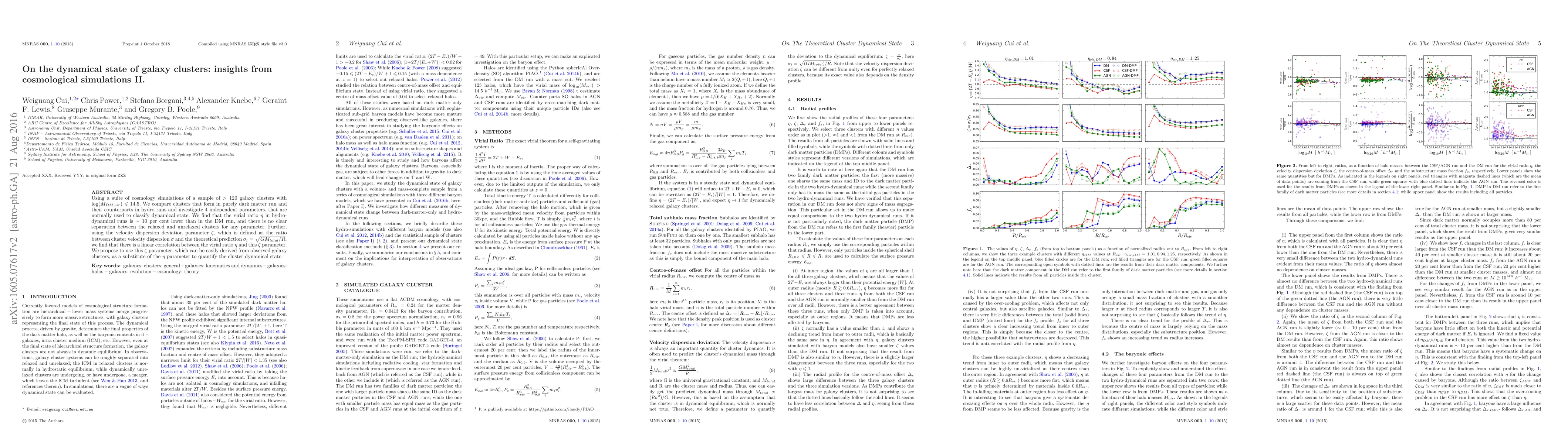 Galaxy cluster simulations show that adding hydrodynamics reduces virial ratio by 10% compared to dark matter only, challenging traditional dynamical state classification parameters.