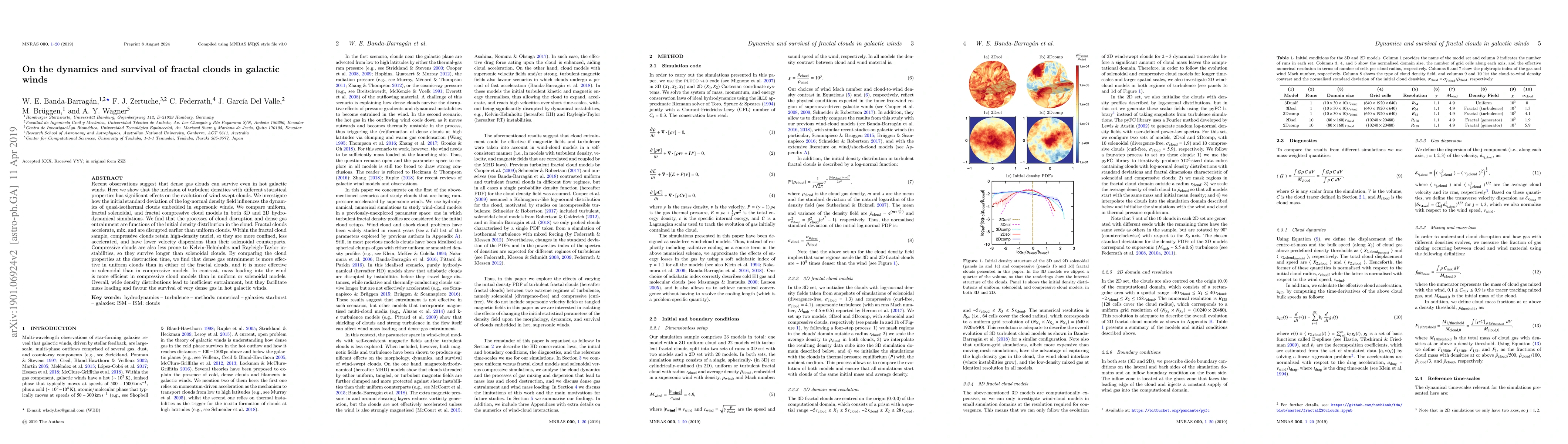 This paper examines the survival dynamics of fractal clouds in galactic winds, finding that their initial density distribution significantly impacts cloud disruption and entrainment processes. Fractal compressive clouds survive longer than solenoidal ones due to their high-density nuclei, while uniform clouds entrain dense gas more effectively but experience more disruption.