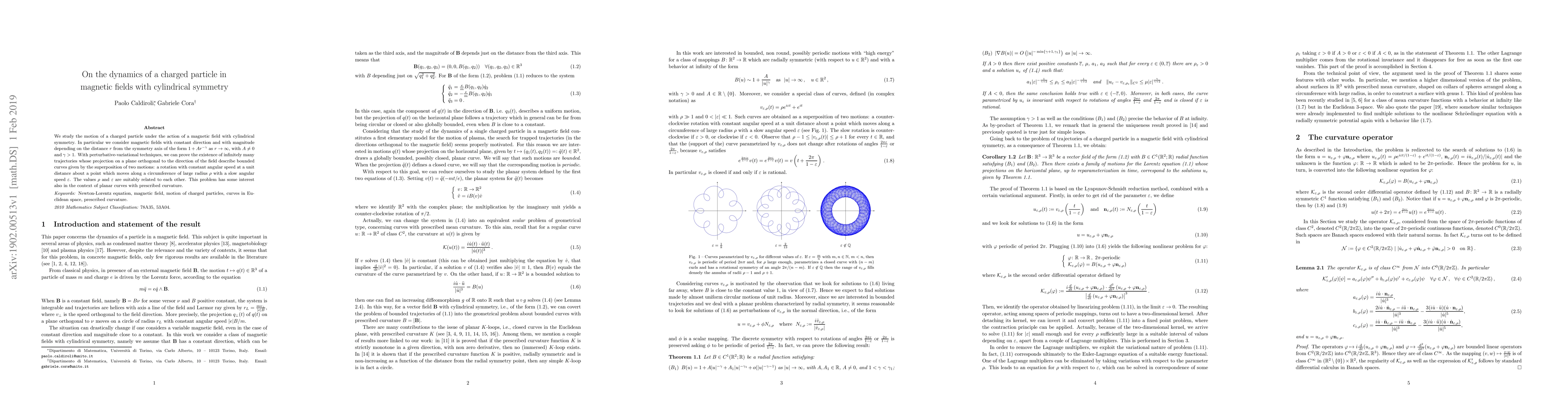 Researchers studied a charged particle's motion in magnetic fields with cylindrical symmetry, finding infinitely many trajectories that describe bounded curves as the field's magnitude increases, depending on distance from the axis.