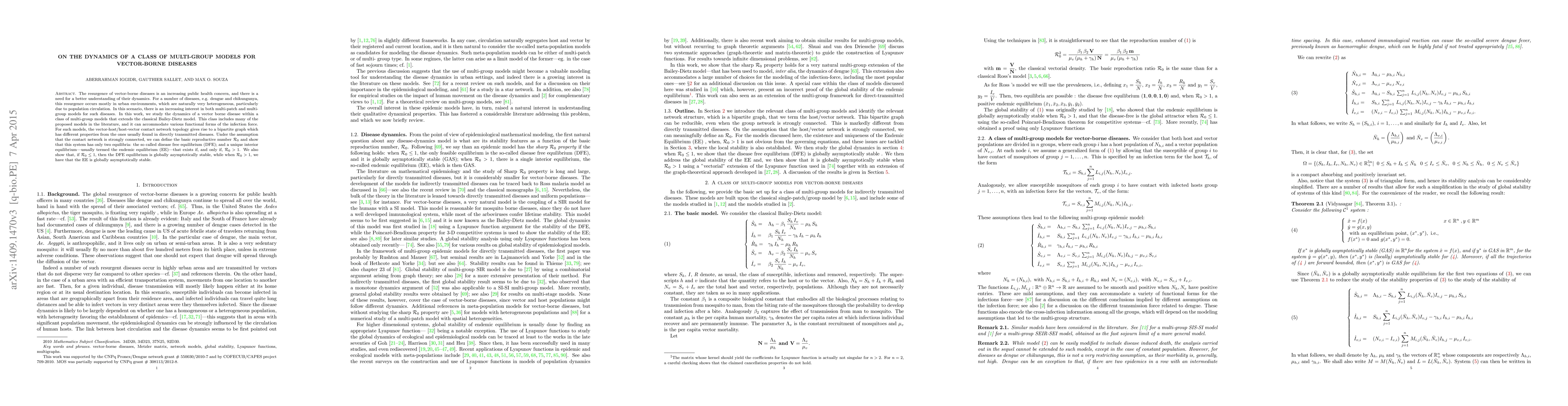 This paper explores the dynamics of vector-borne diseases using multi-group models that extend the Bailey-Dietz model, focusing on urban environments. It establishes the basic reproductive number $\mathcal{R}_0$ and proves the existence of two equilibria: a disease-free equilibrium and an endemic equilibrium, with stability conditions dependent on $\mathcal{R}_0$.