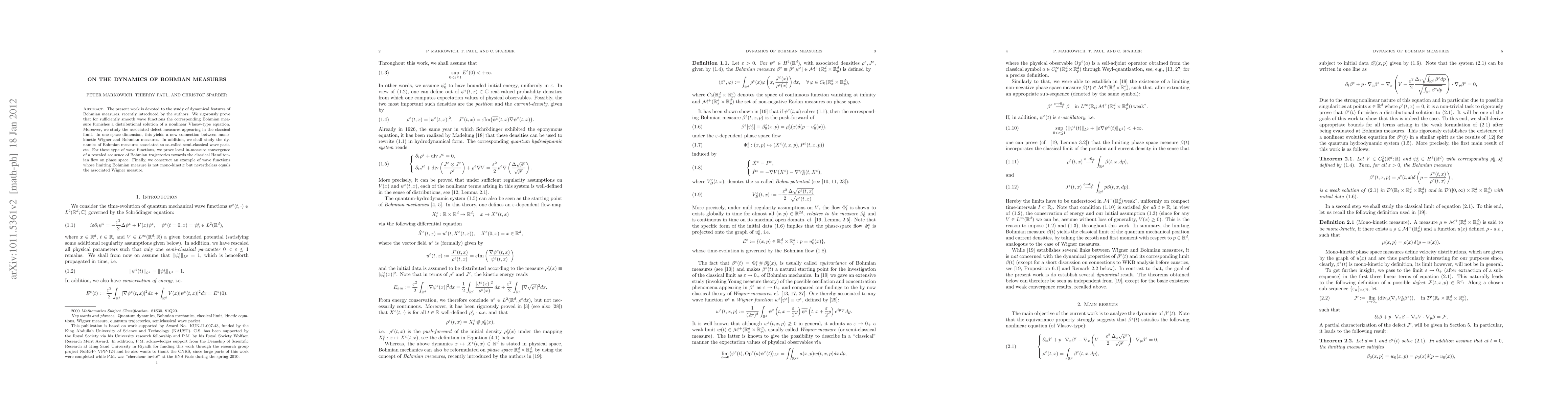 This paper rigorously establishes that Bohmian measures solve a nonlinear Vlasov-type equation for smooth wave functions and explores their classical limit, revealing connections between mono-kinetic Wigner and Bohmian measures in one dimension. It also investigates the dynamics of semi-classical wave packets, proving local convergence of Bohmian measures to classical Hamiltonian flows.