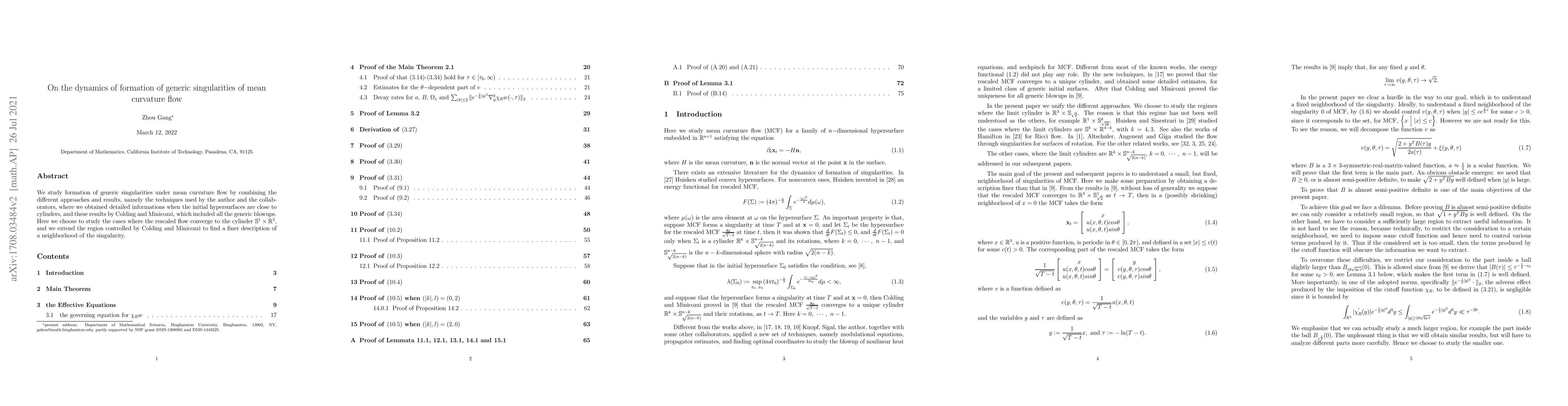 This paper explores the dynamics of generic singularities in mean curvature flow, integrating various analytical methods to study blowup behavior and derive sharp decay rates for key parameters near the singularity. It also provides remainder estimates in different norms.