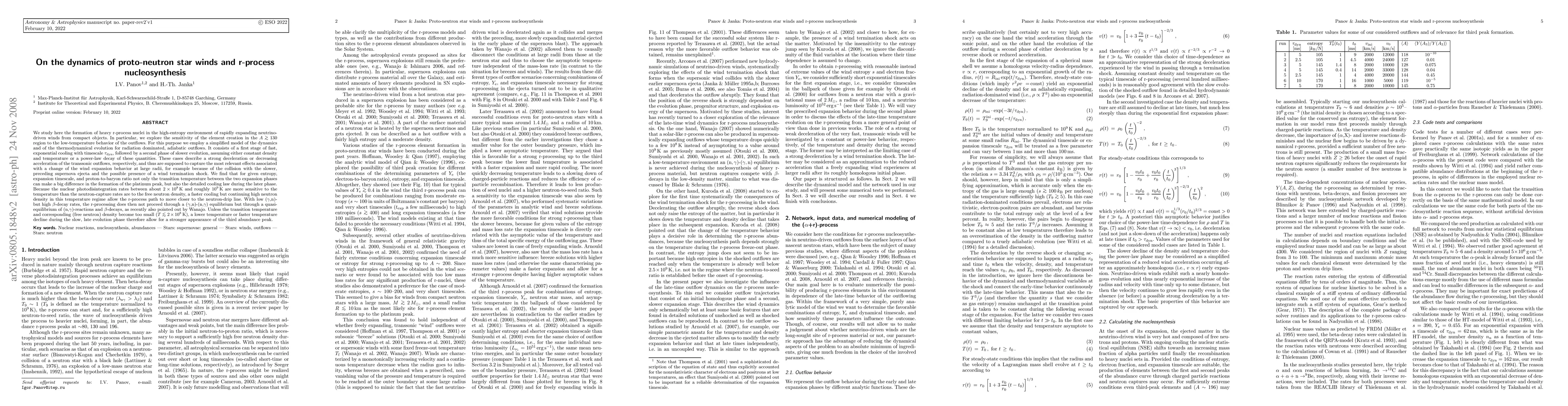 We study here the formation of heavy r-process nuclei in the high-entropy environment of rapidly expanding neutrino-driven winds from compact objects. In particular, we explore the sensitivity of the element creation in the A>130 region to the low-temperature behavior of the outflows. For this purpose we employ a simplified model of the dynamics and thermodynamical evolution for radiation dominated, adiabatic outflows. It consists of a first stage of fast, exponential cooling, followed by a second phase of slower evolution, either assuming constant density and temperature or a power-law decay of these quantities. These cases are supposed to capture the most relevant effects of a strong deceleration or decreasing acceleration of the transsonic outflows, respectively, e.g. in a wind termination shock caused by the collision with the slower, preceding supernova ejecta. We find that not only the transition temperature between the two expansion phases can make a big difference in the formation of the platinum peak, but also the detailed cooling law during the later phase. Unless the transition temperature and corresponding (free neutron) density become too small (T < 2*10^8 K), a lower temperature or faster temperature decline during this phase allow for a stronger appearance of the third abundance peak. Since the nuclear photodisintegration rates between ~2*10^8 K and ~10^9 K are more sensitive to the temperature than the n-capture rates are to the free neutron density, a faster cooling in this temperature regime shifts the r-process path closer to the n-drip line. With low (gamma,n)- but high beta-decay rates, the r-processing then does not proceed through a (gamma,n)-(n,gamma) equilibrium but through a quasi-equilibrium of (n,gamma)-reactions and beta-decays, as recently also pointed out by Wanajo.