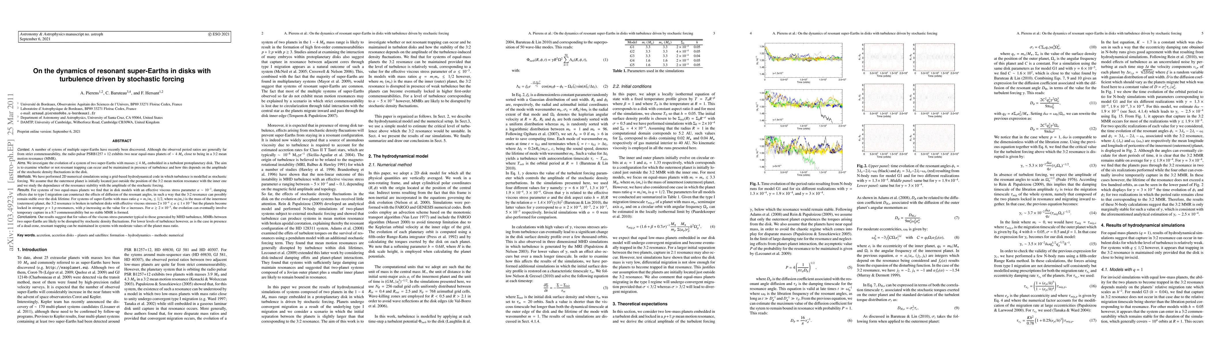 This paper explores the dynamics of resonant super-Earths in turbulent protoplanetary disks driven by stochastic forcing, finding that while resonant trapping can occur in low-turbulence scenarios, MMRs are likely disrupted by higher levels of turbulence due to stochastic density fluctuations. The stability of the 3:2 mean motion resonance depends on the viscous stress parameter and the mass ratio of the planets.