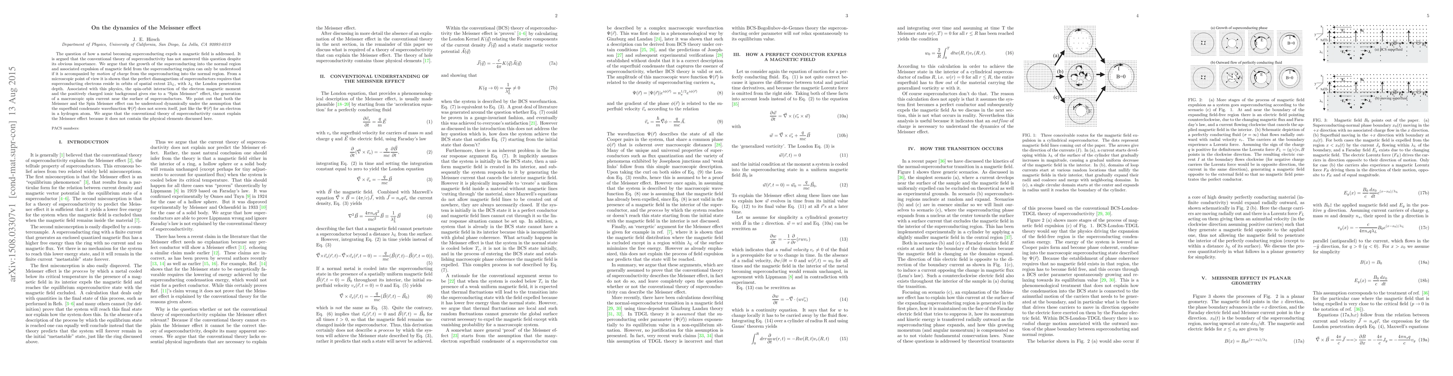 This paper argues that the conventional theory of superconductivity fails to explain the dynamics of the Meissner effect, proposing that magnetic field expulsion requires charge movement from the superconducting to the normal region. It introduces a "Spin Meissner" effect due to spin-orbit interaction, suggesting that the superfluid condensate wavefunction does not screen itself, akin to an electron in a hydrogen atom.