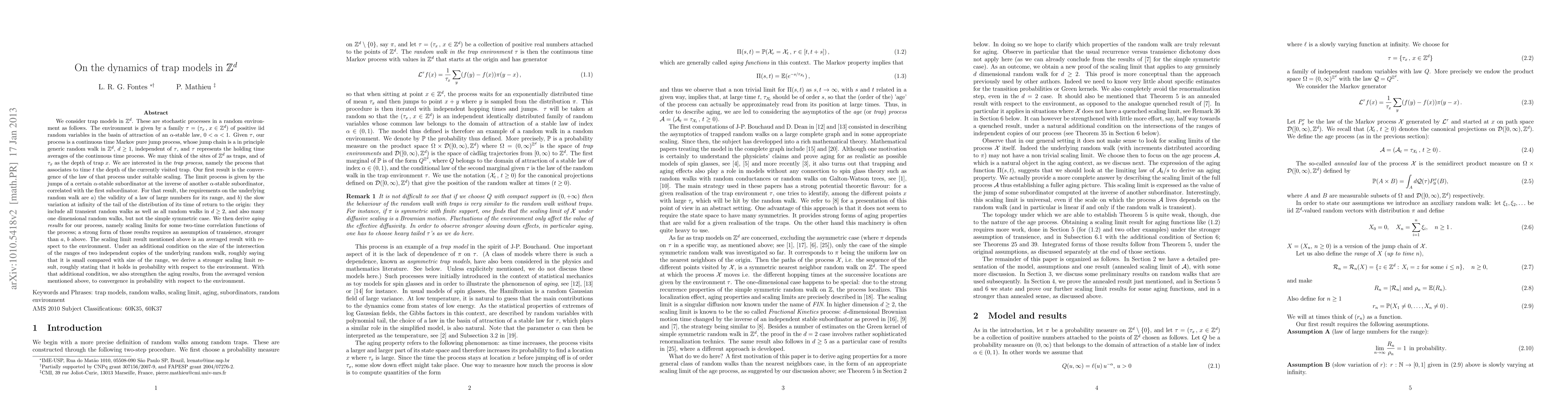 We consider trap models on Z^d, namely continuous time Markov jump process on