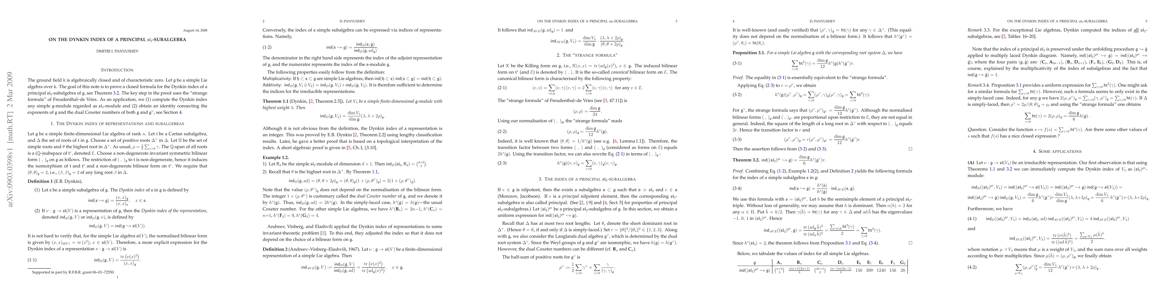 Let $g$ be a simple Lie algebra over an algebraically closed field of characteristic zero. The goal of this note is to prove a closed formula for the Dynkin index of a principal $sl_2$-subalgebra of $g$. The key step in the proof uses the "strange formula" of Freudenthal--de Vries. As an application, we (1) compute the Dynkin index any simple $g$-module regarded as $sl_2$-module and (2) obtain an identity connecting the exponents of $g$ and the dual Coxeter numbers of both $g$ and the Langlands dual $g^\vee$.