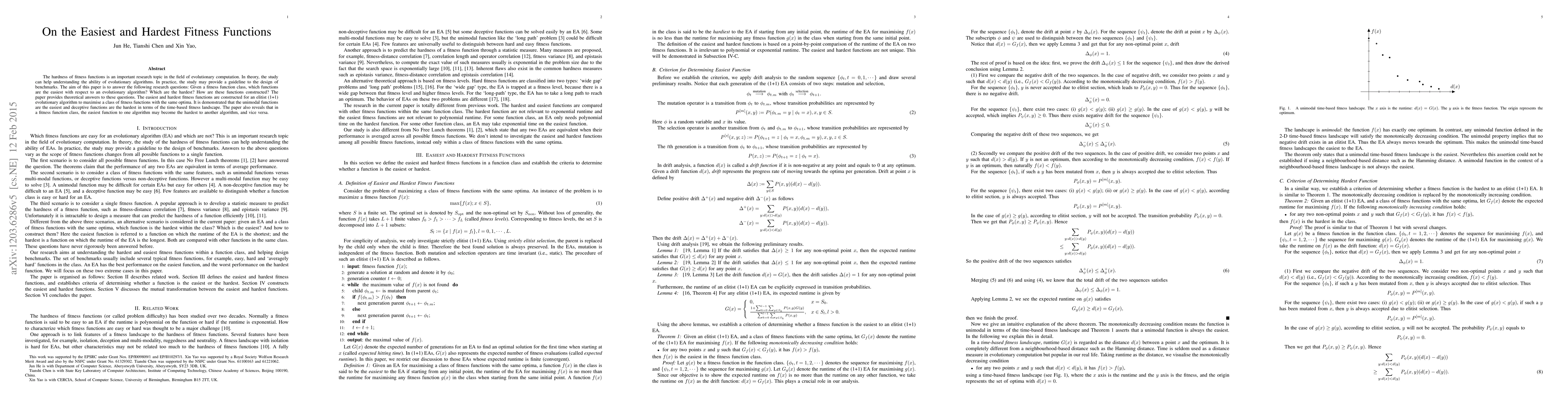 Theoretical framework and algorithms for constructing the easiest and hardest fitness functions for an elitist (1+1) EA, based on the time-based fitness landscape.